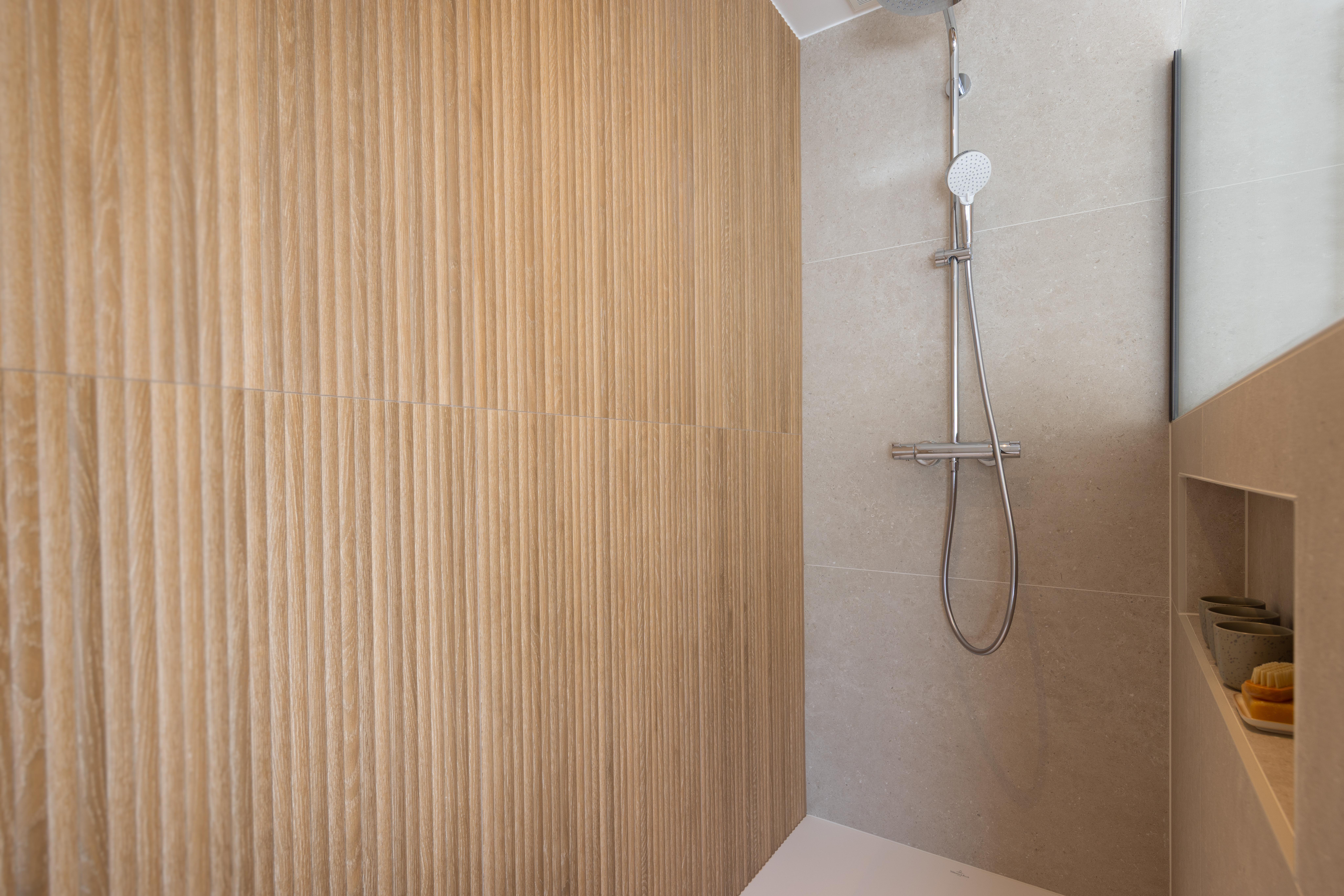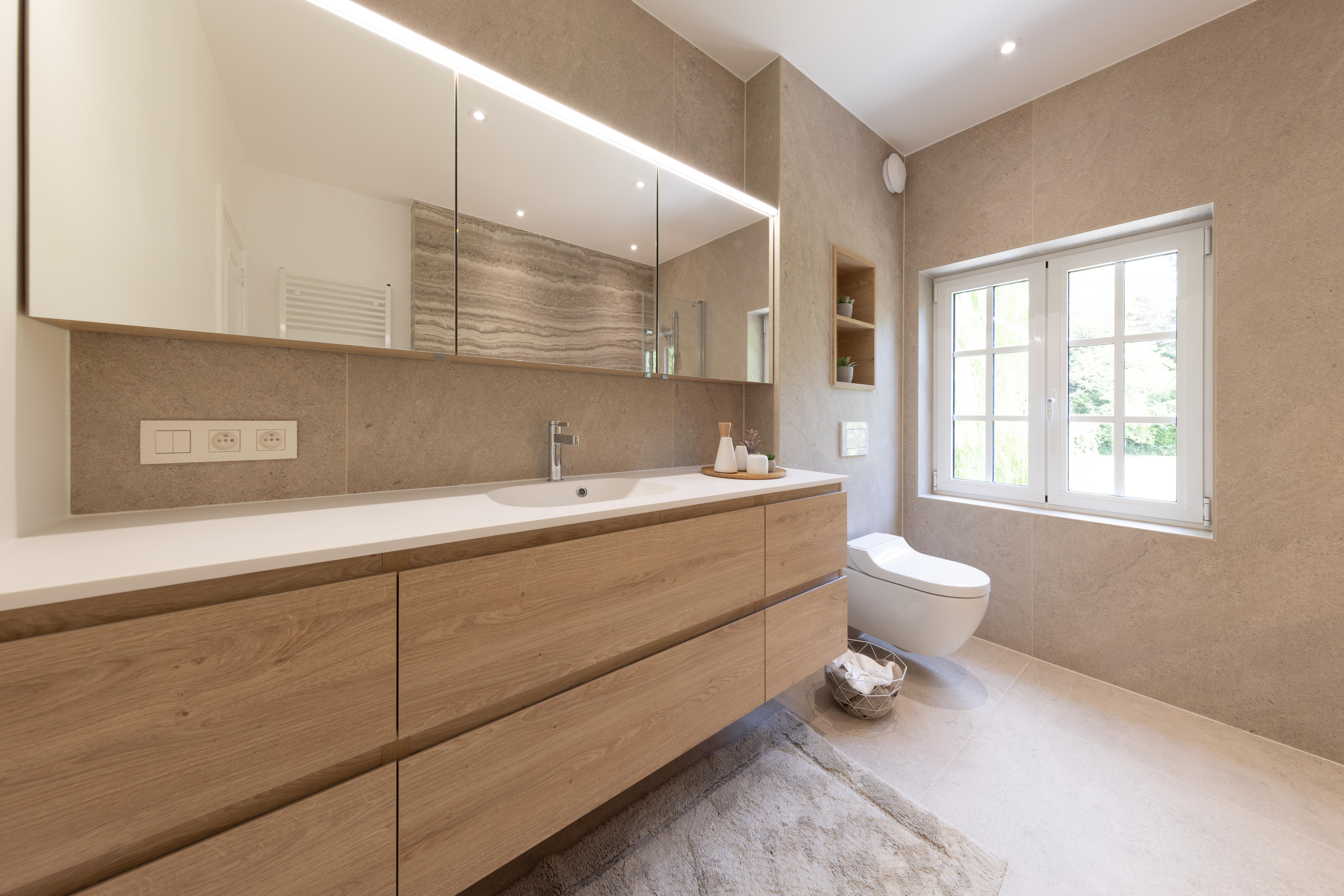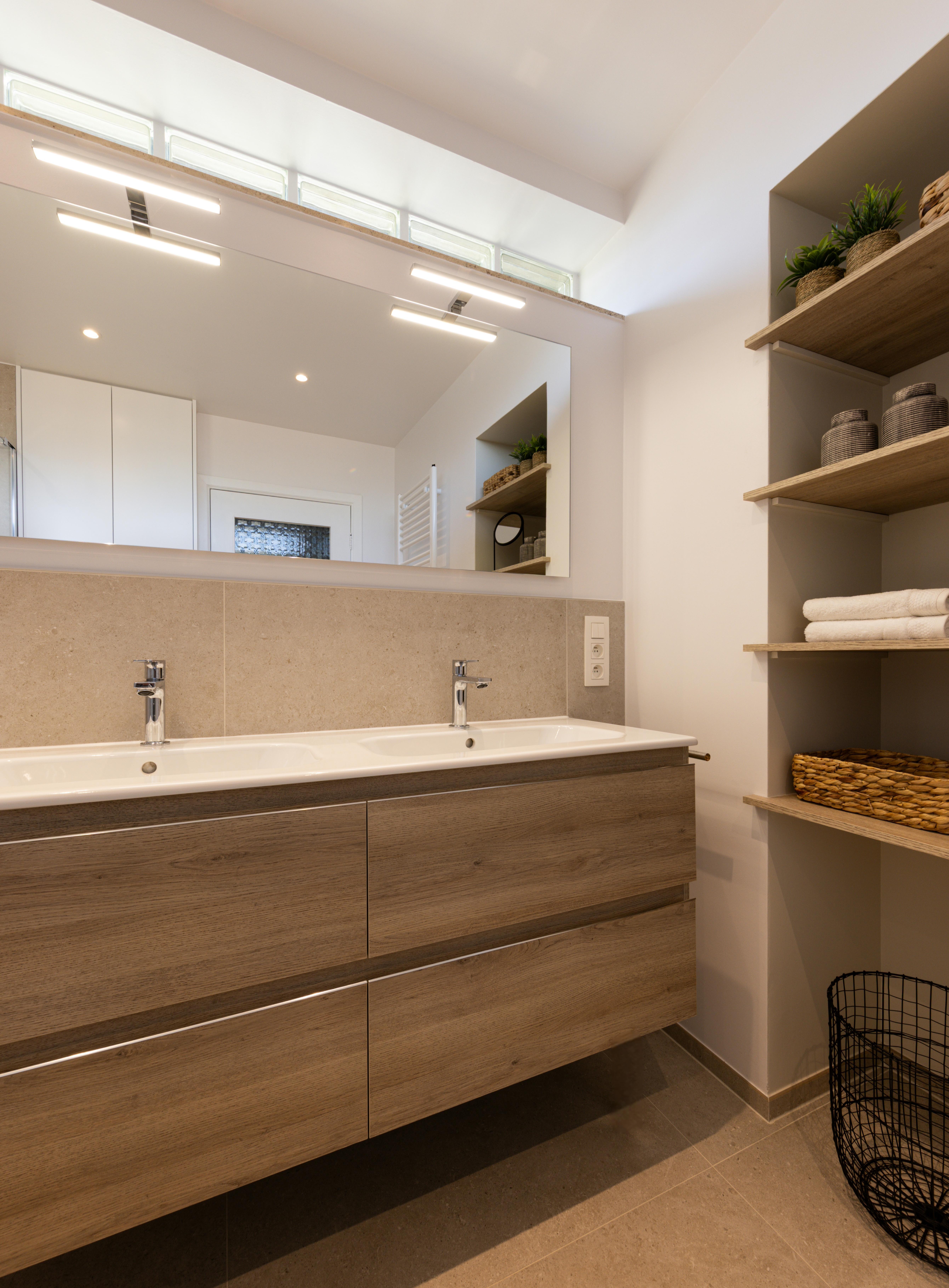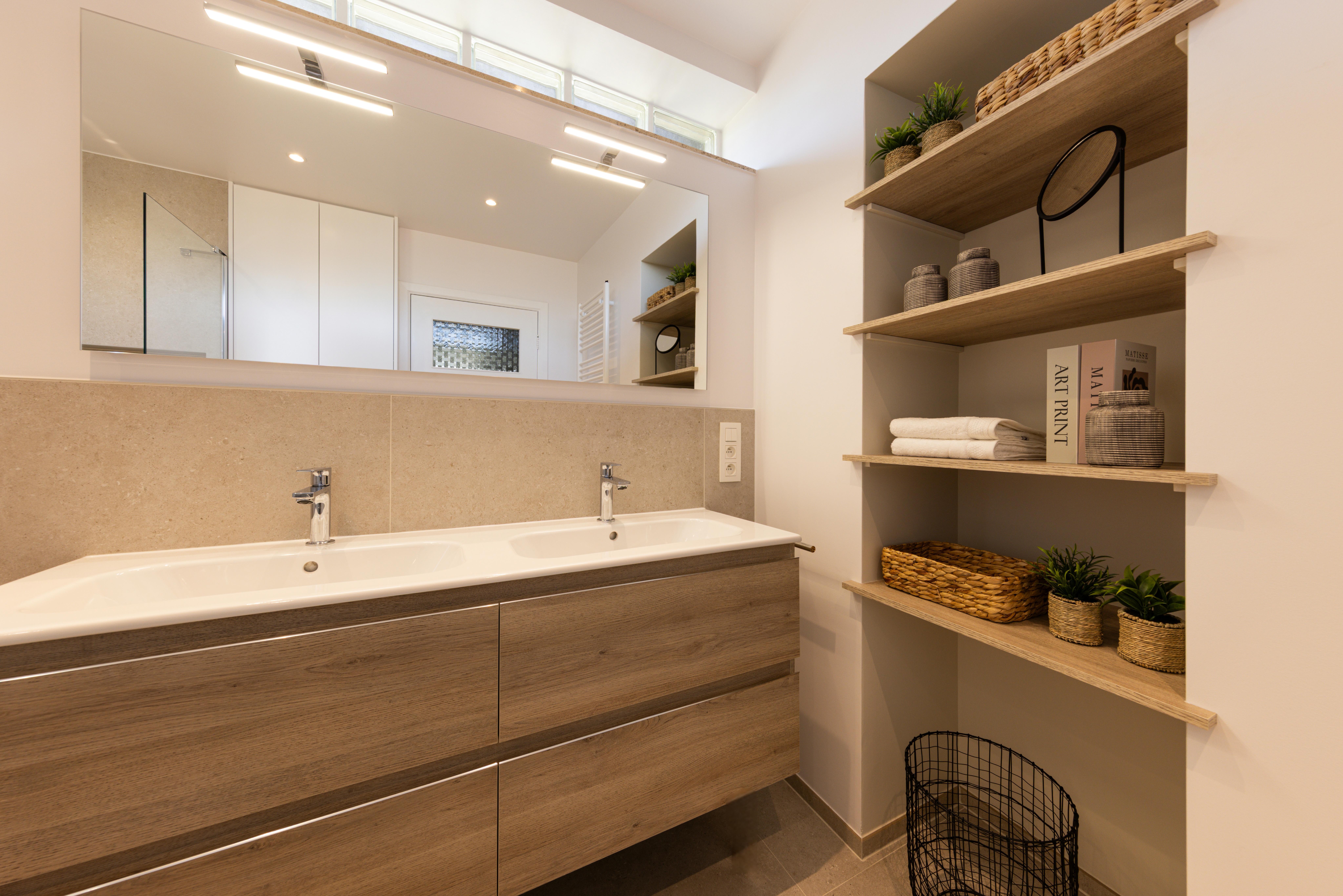 Salle de bains effet bois maximisé