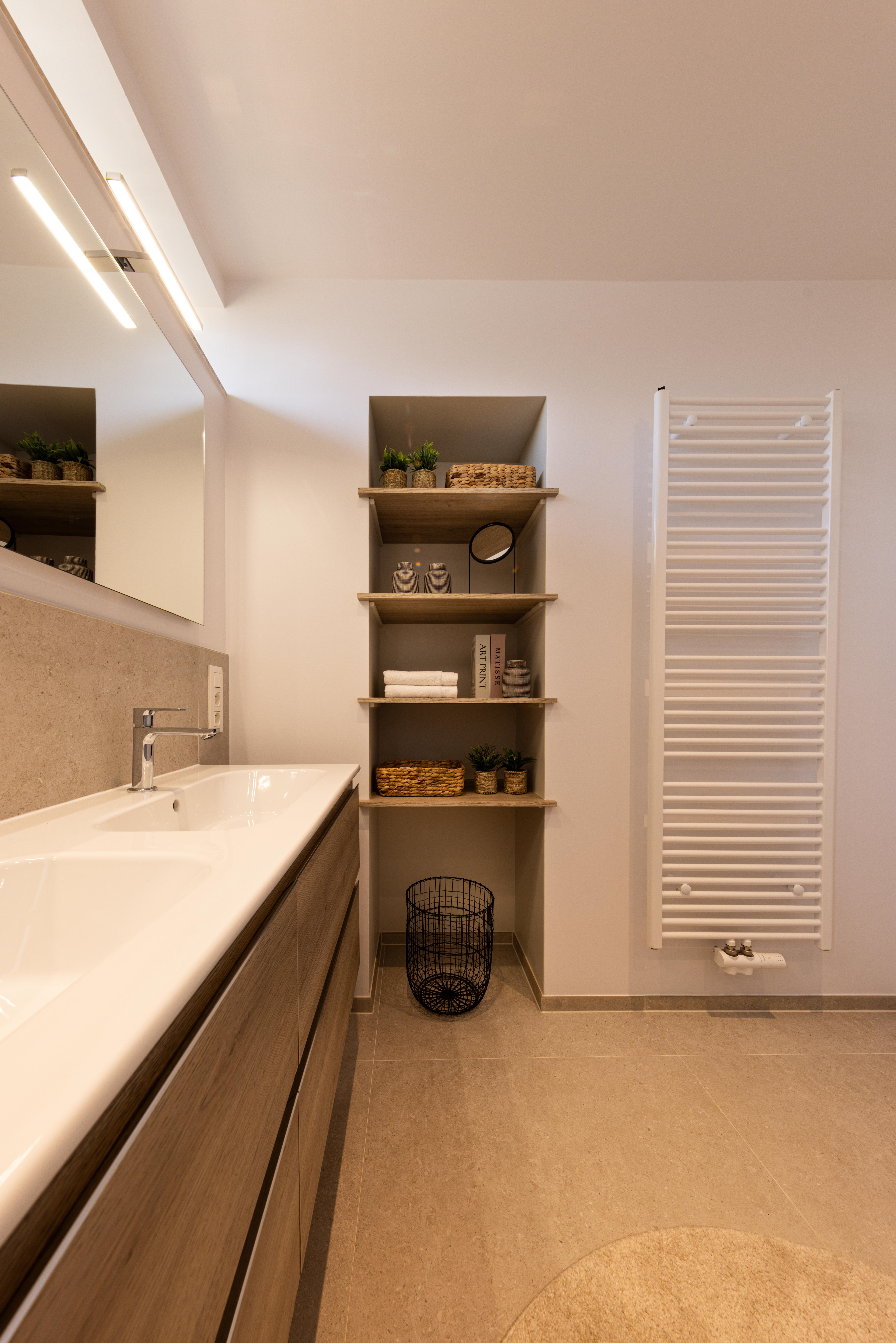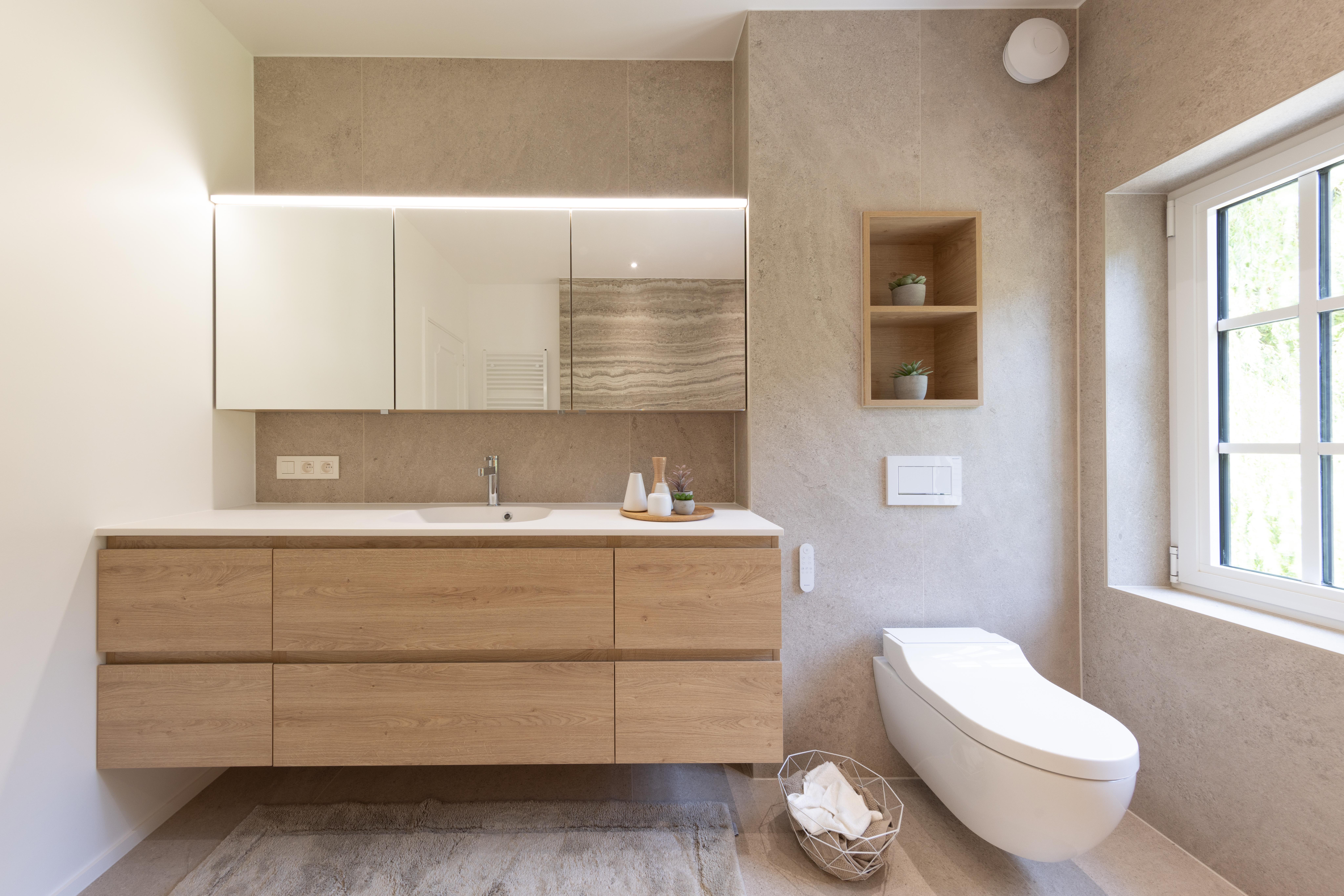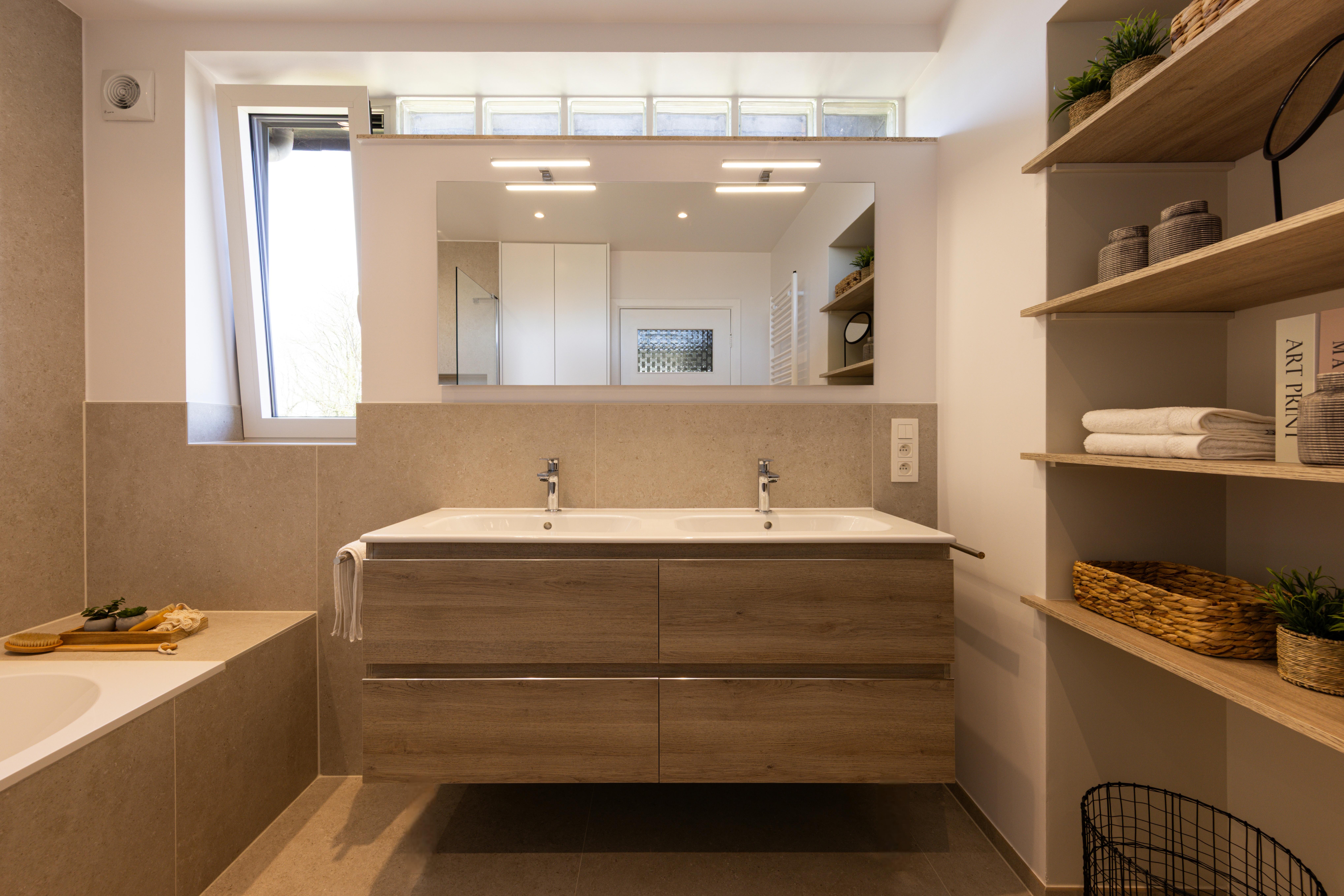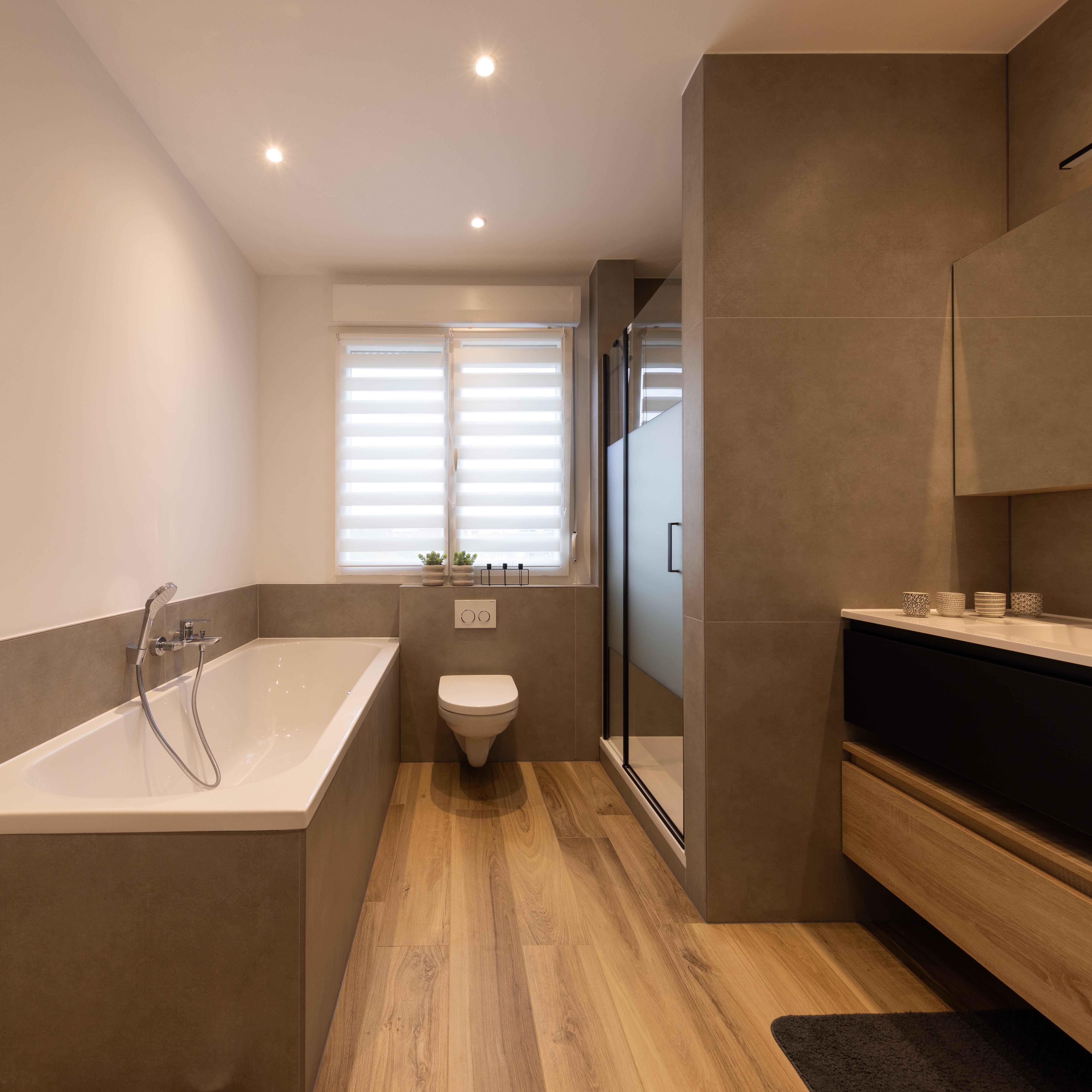 Salle de bains effet bois maximisé