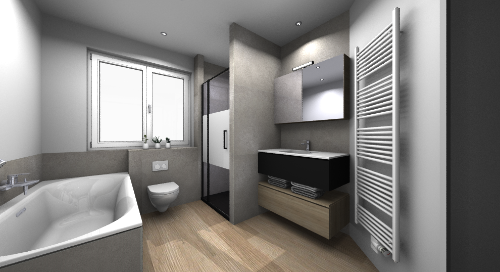 Dans ce projet vous trouverez une baignoire îlot aux lignes originales, une élégante douche italienne placées dans une ambiance épurée mais au design ultra tendance. Ce projet est une invitation au bien être !