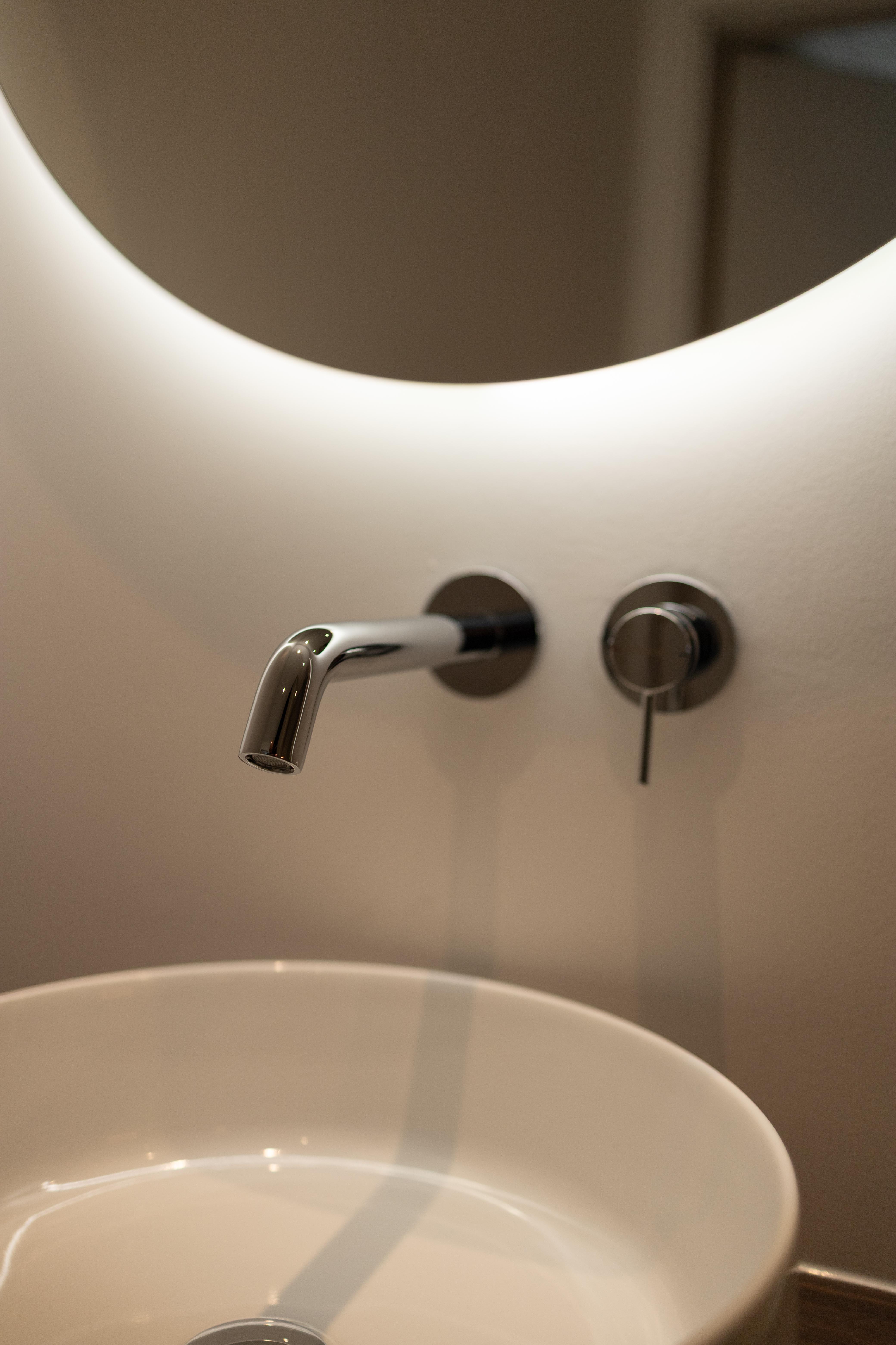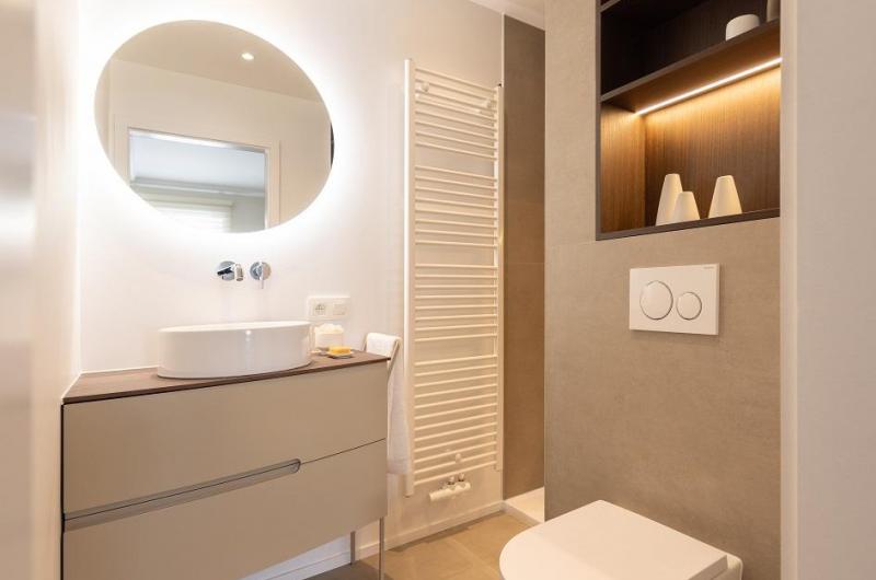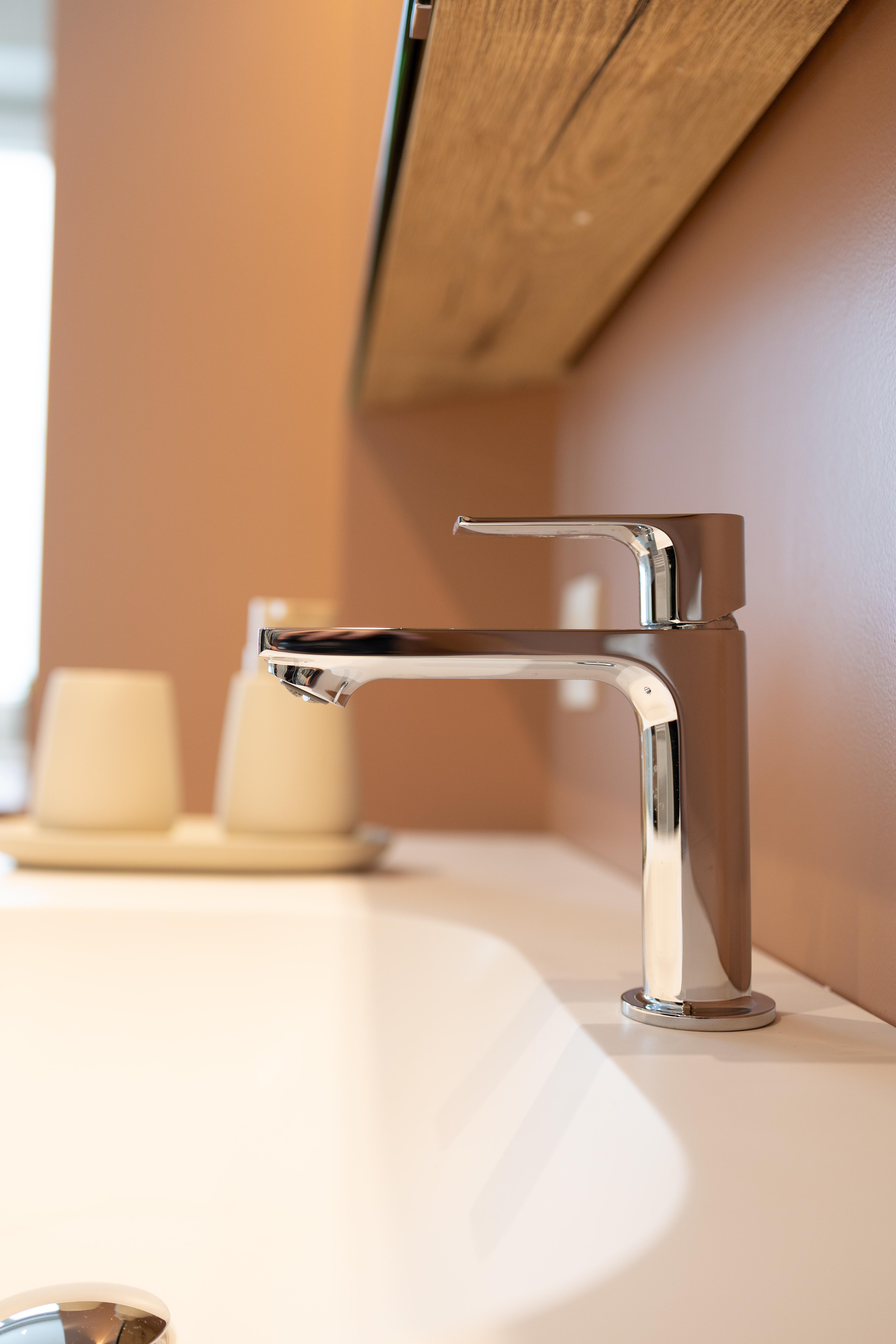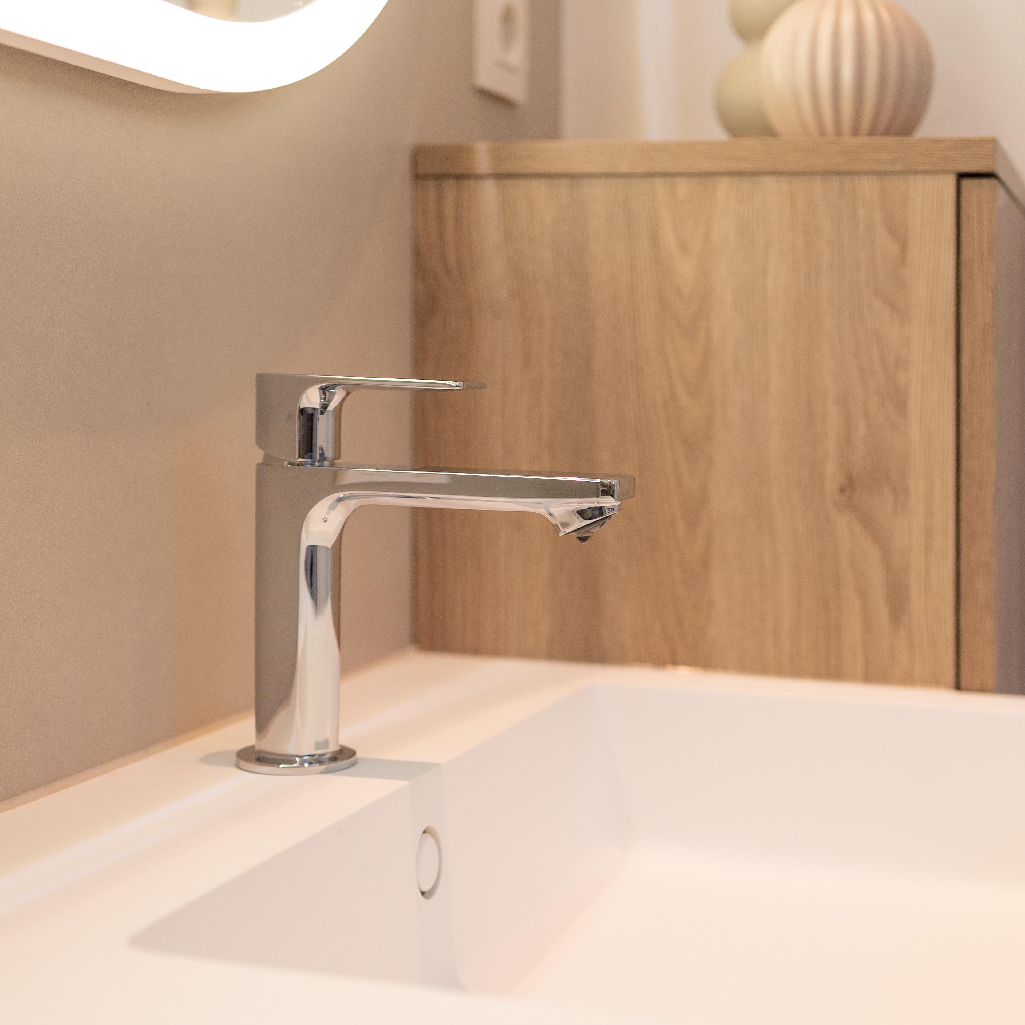 Une salle de bains où on a privilégié un mobilier aux lignes épurées, couleurs douces, lumières chaudes et tamisées pour créer un espace de détente et de relaxation. Vous pourrez repartir ressourcé et plein d'énergie !