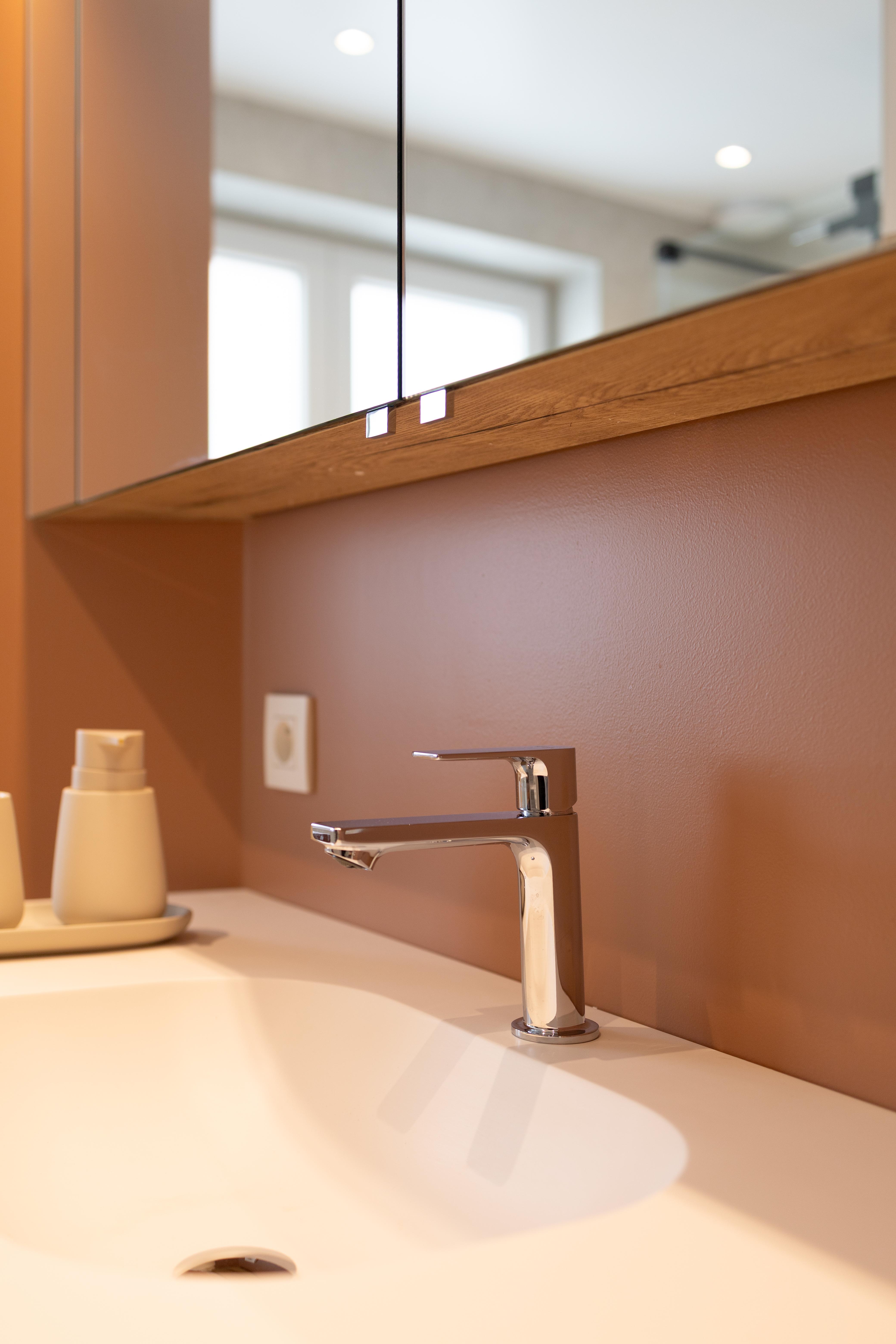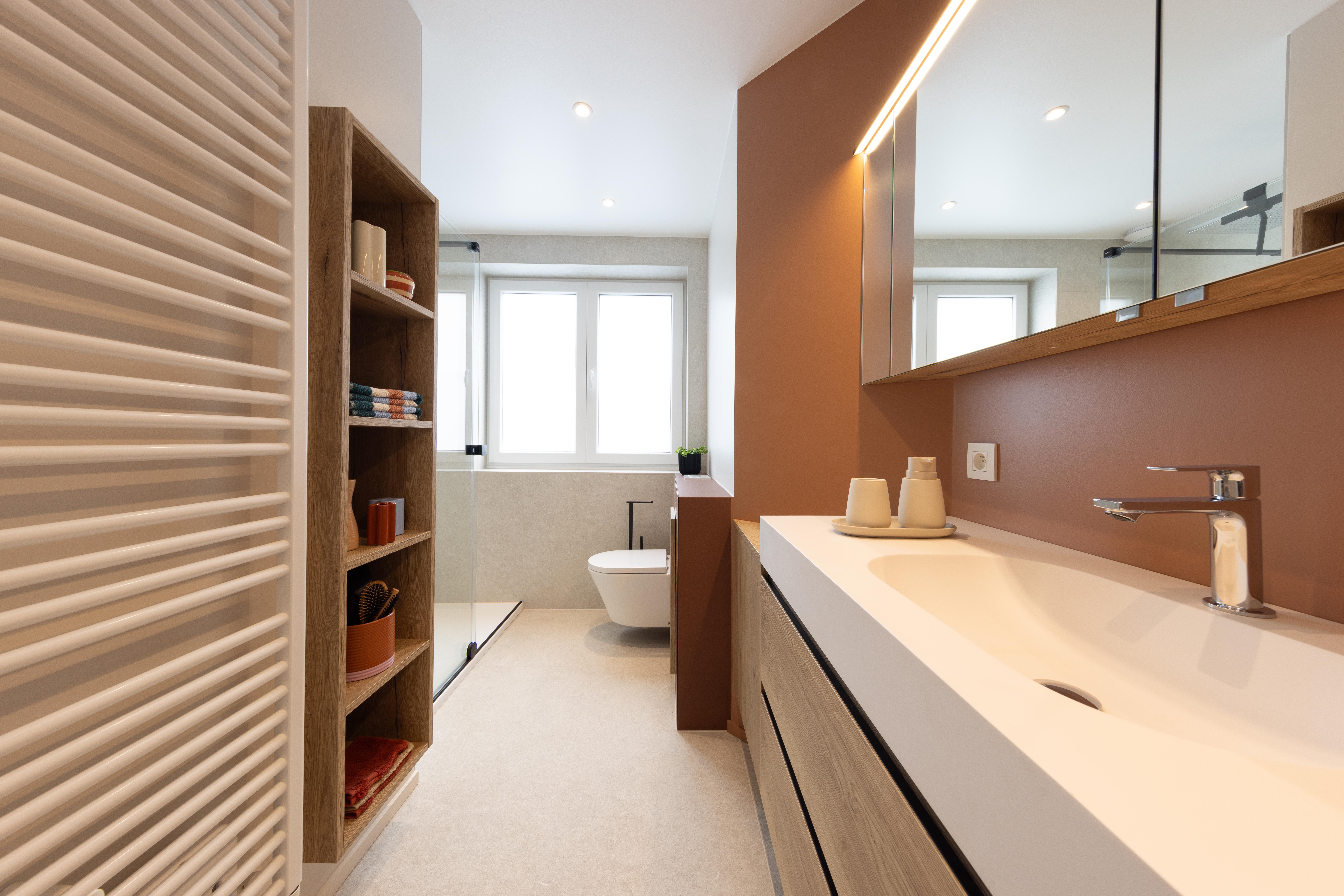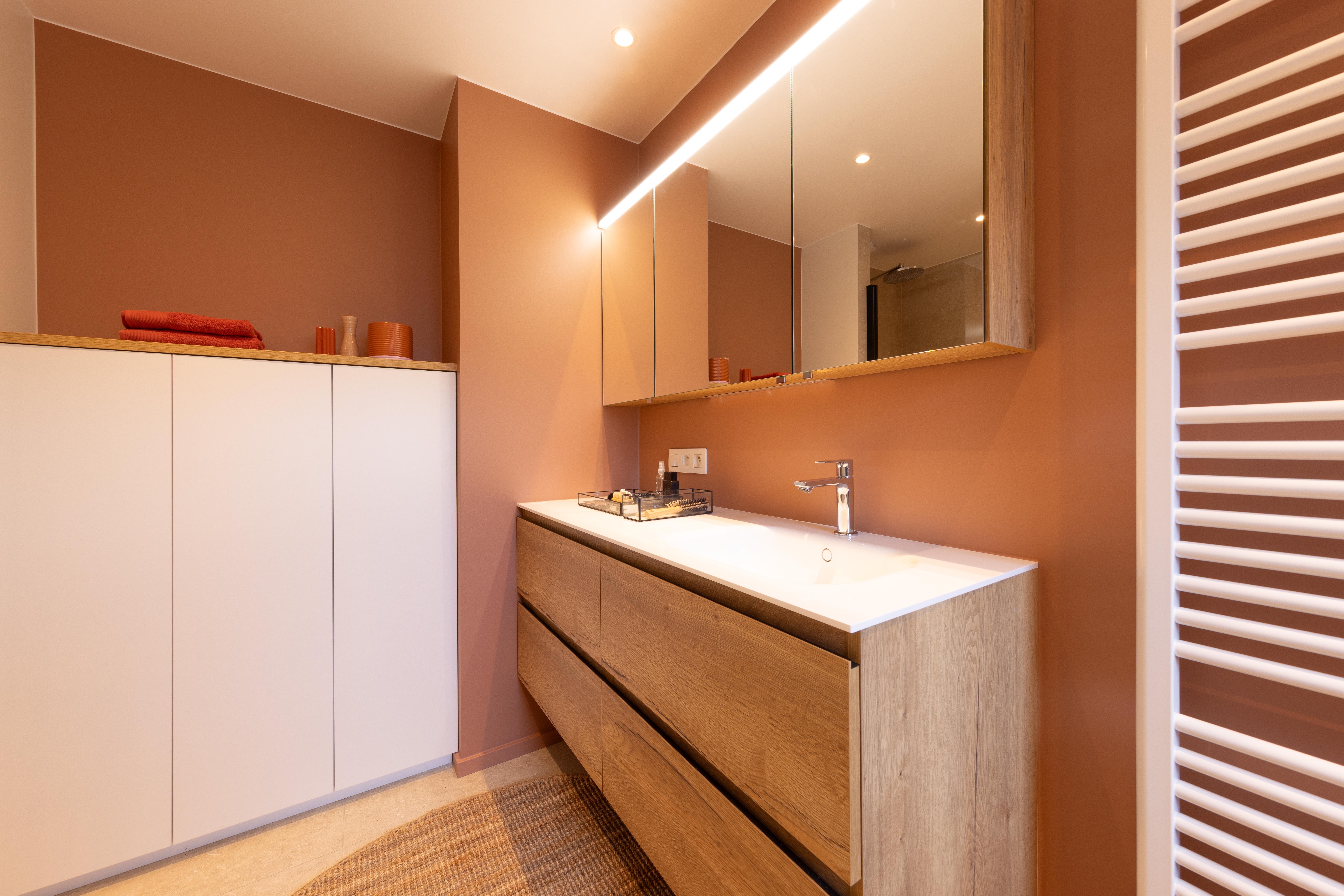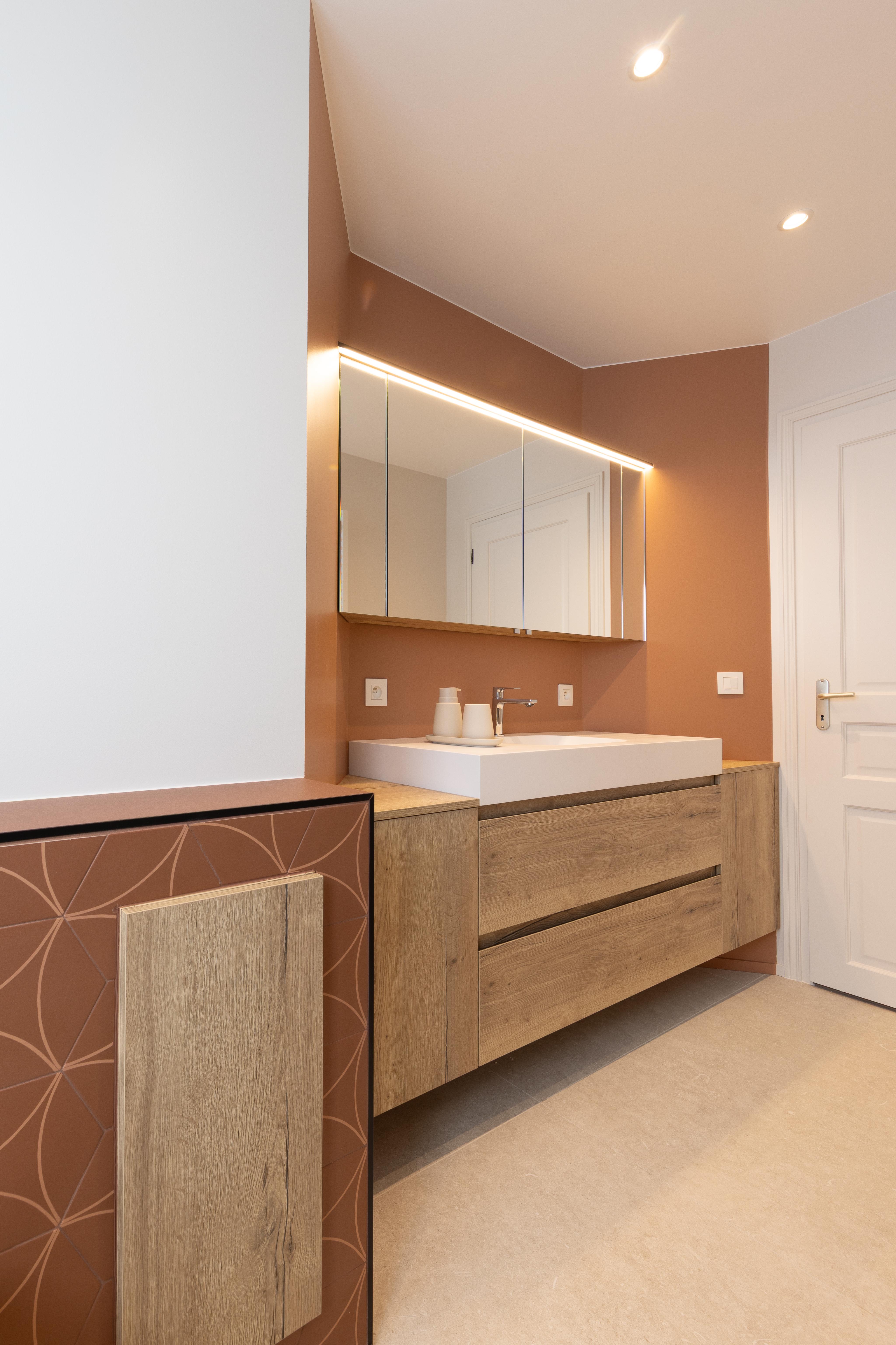 Salle de bains aux tonalités chaleureuses