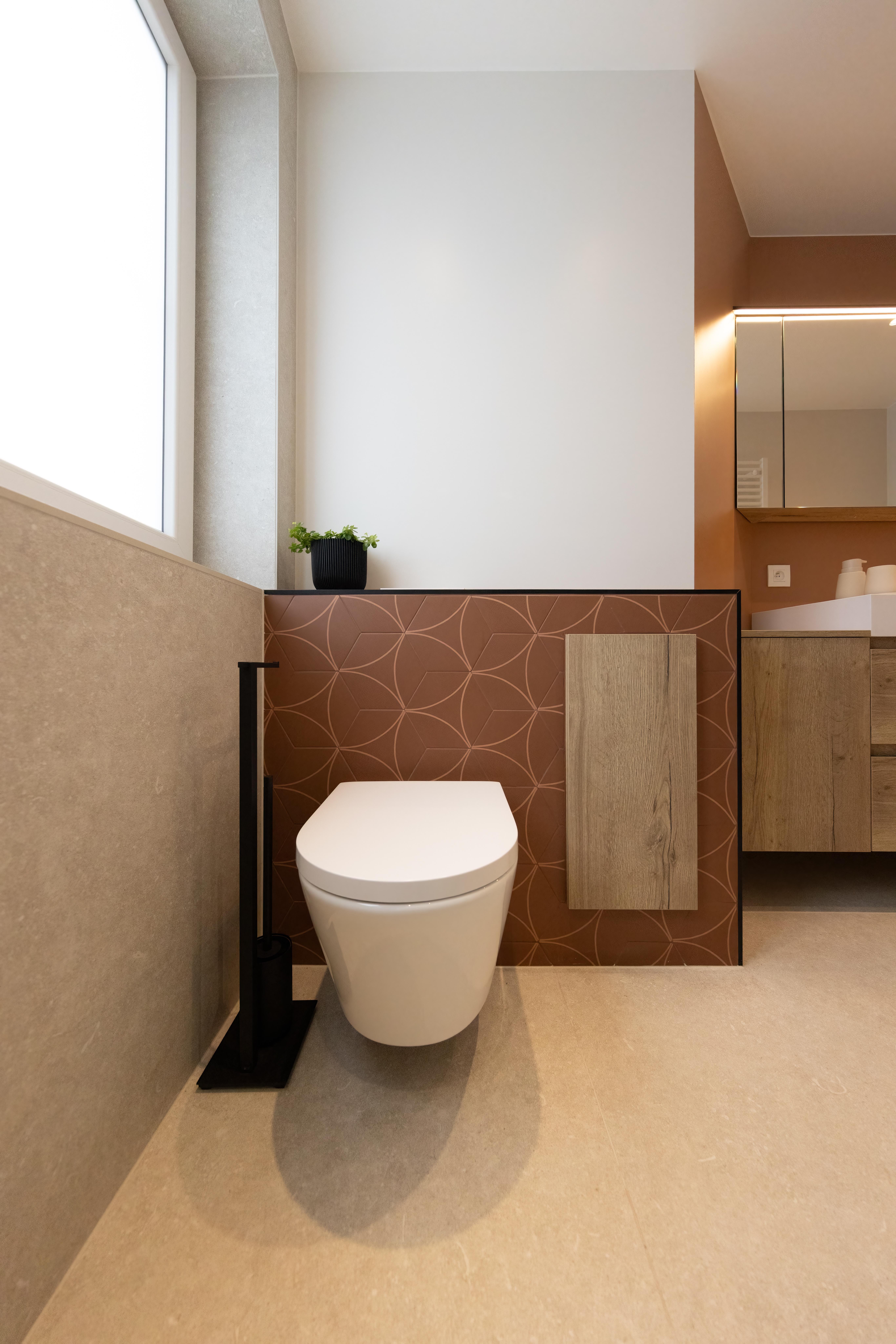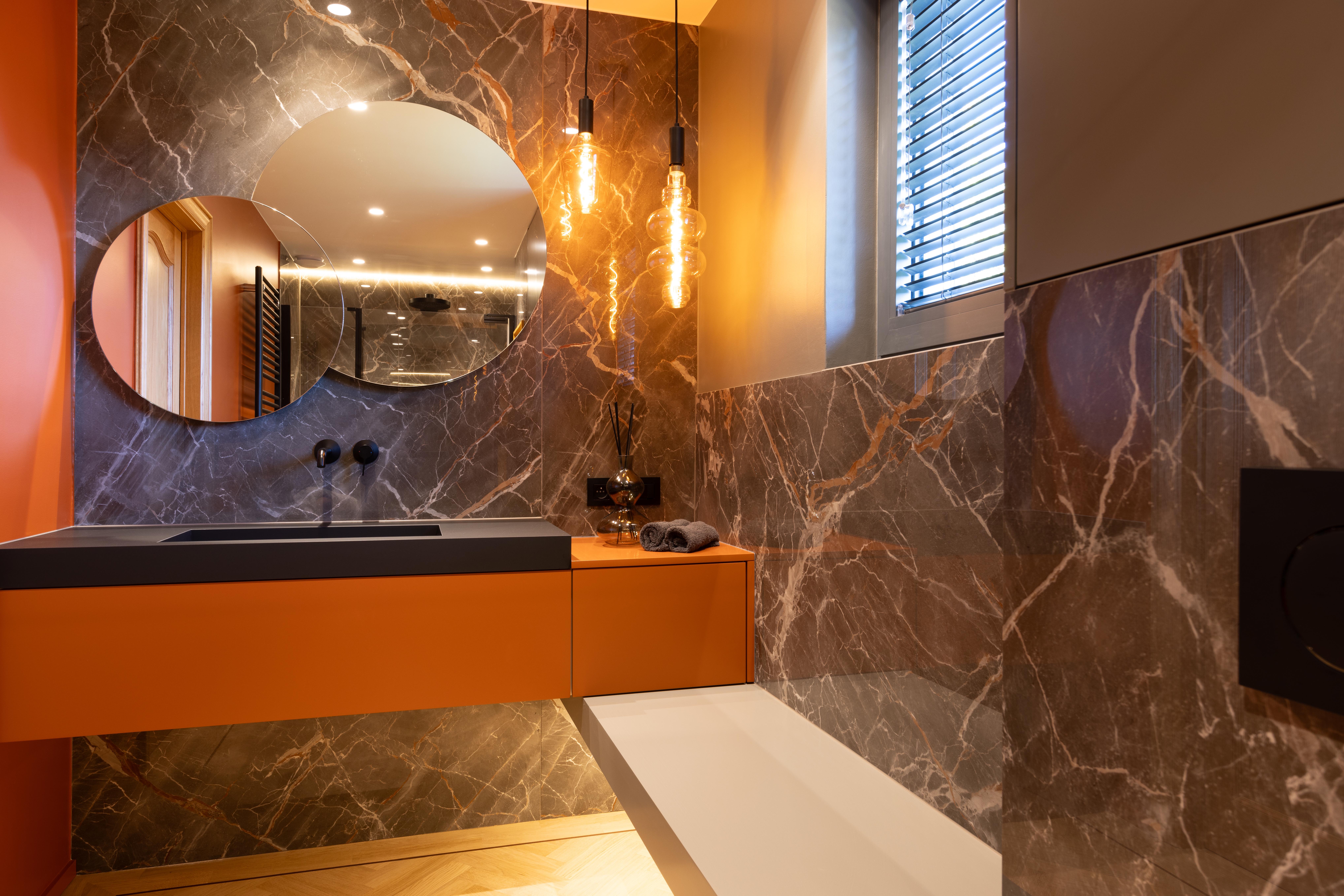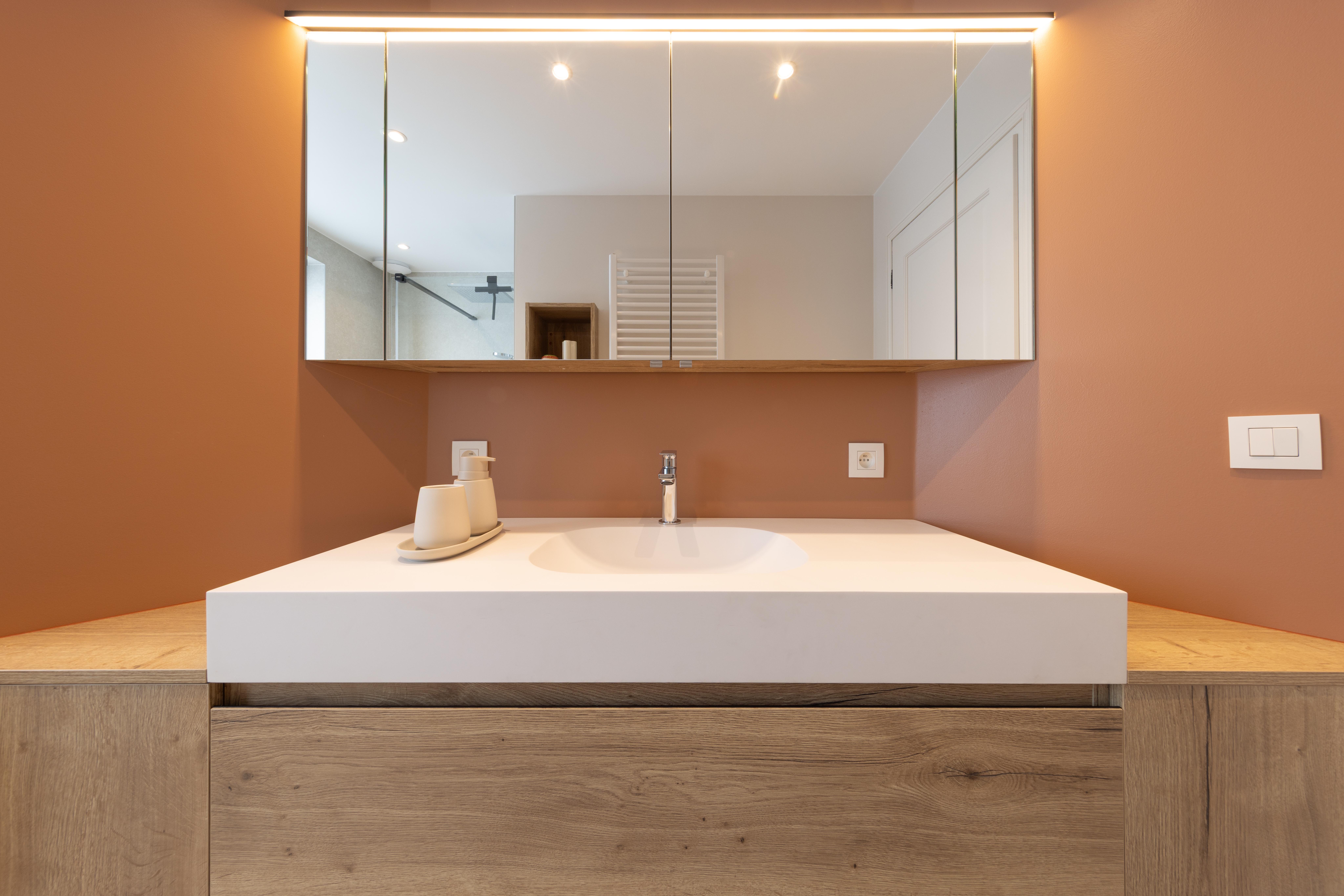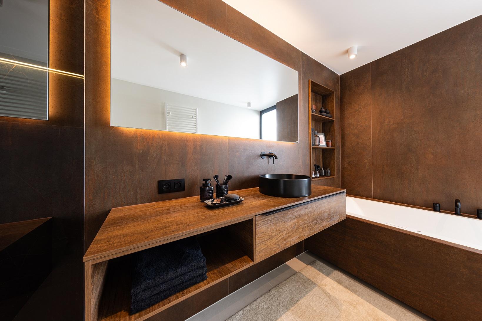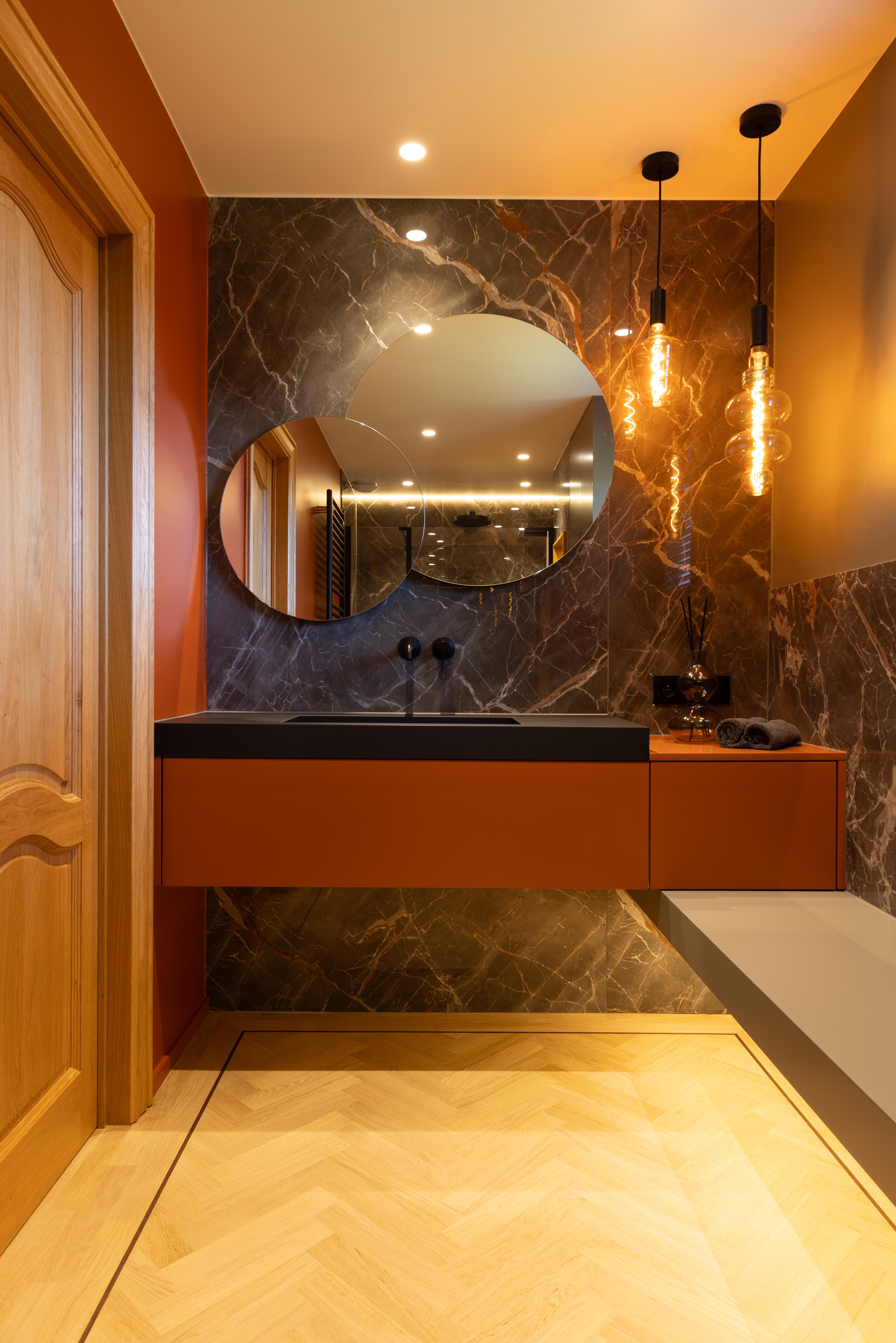 Salle de bains aux tonalités chaleureuses