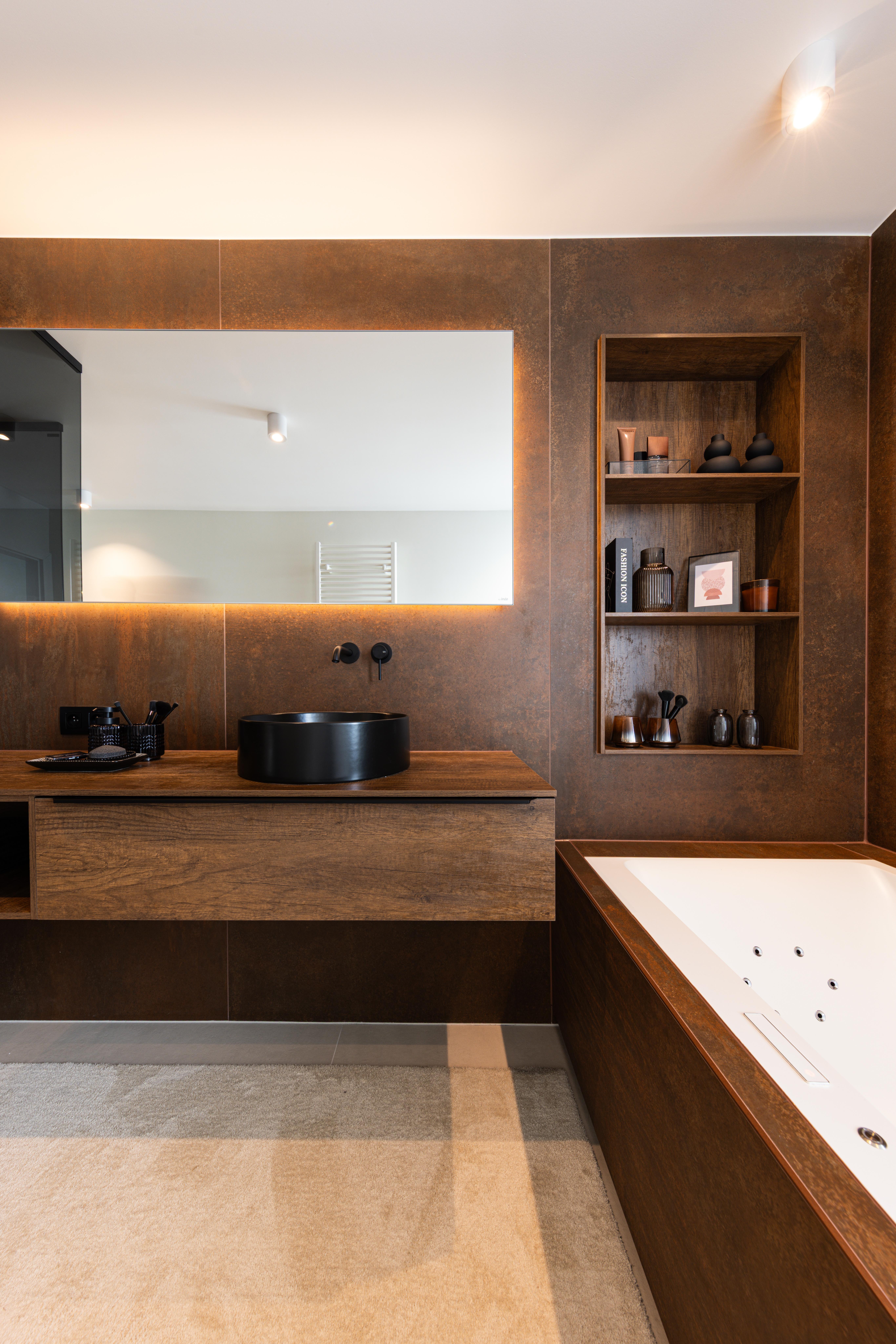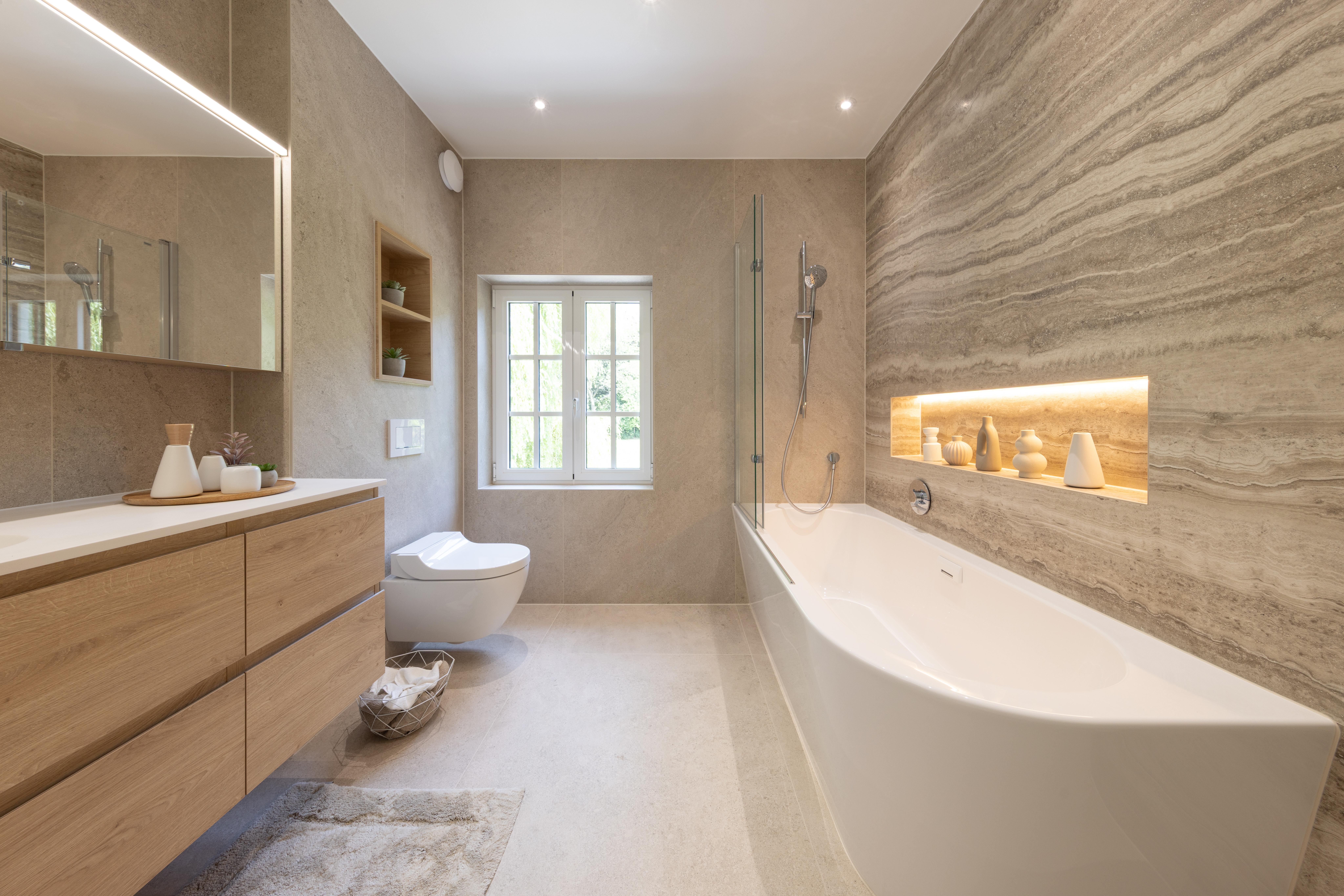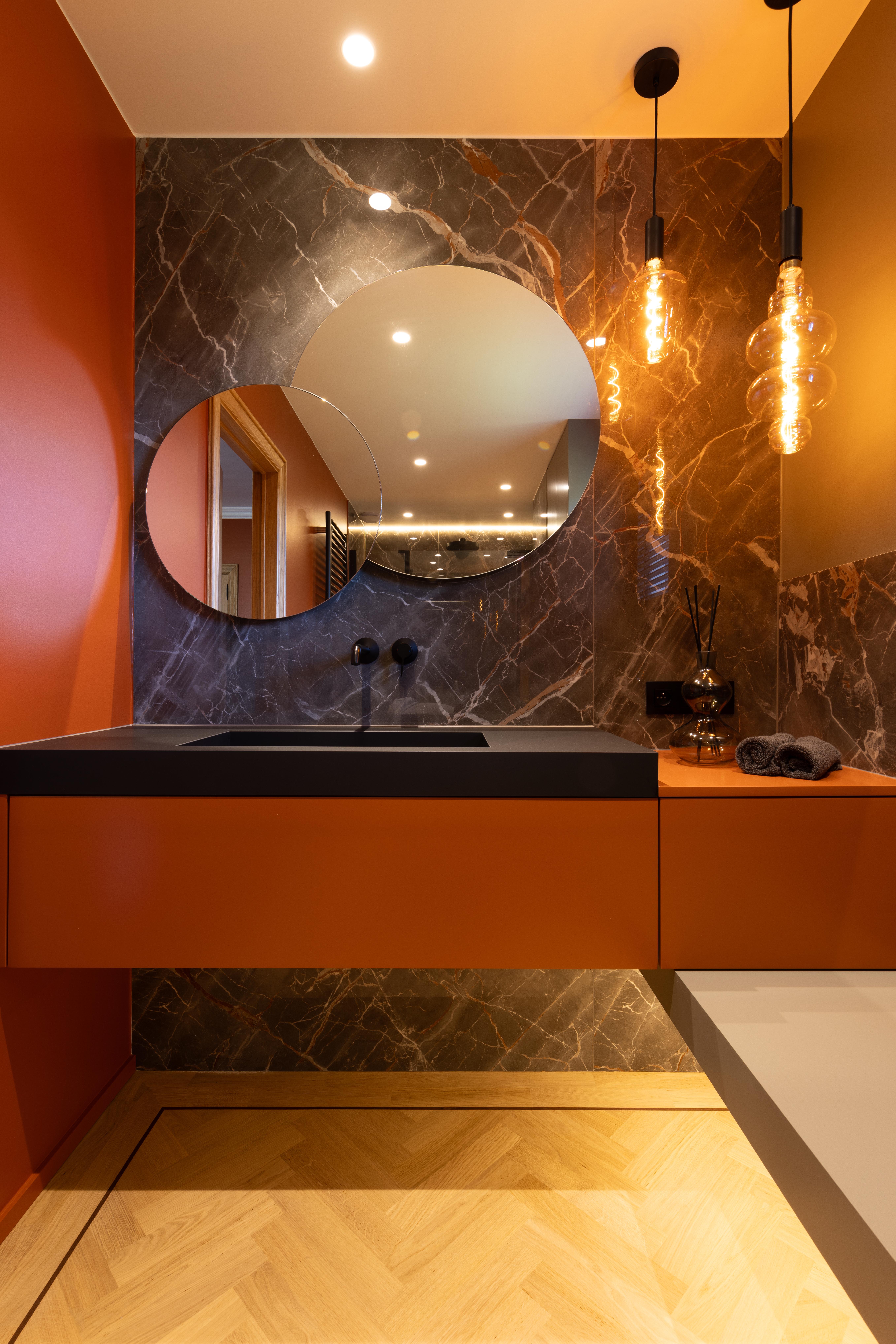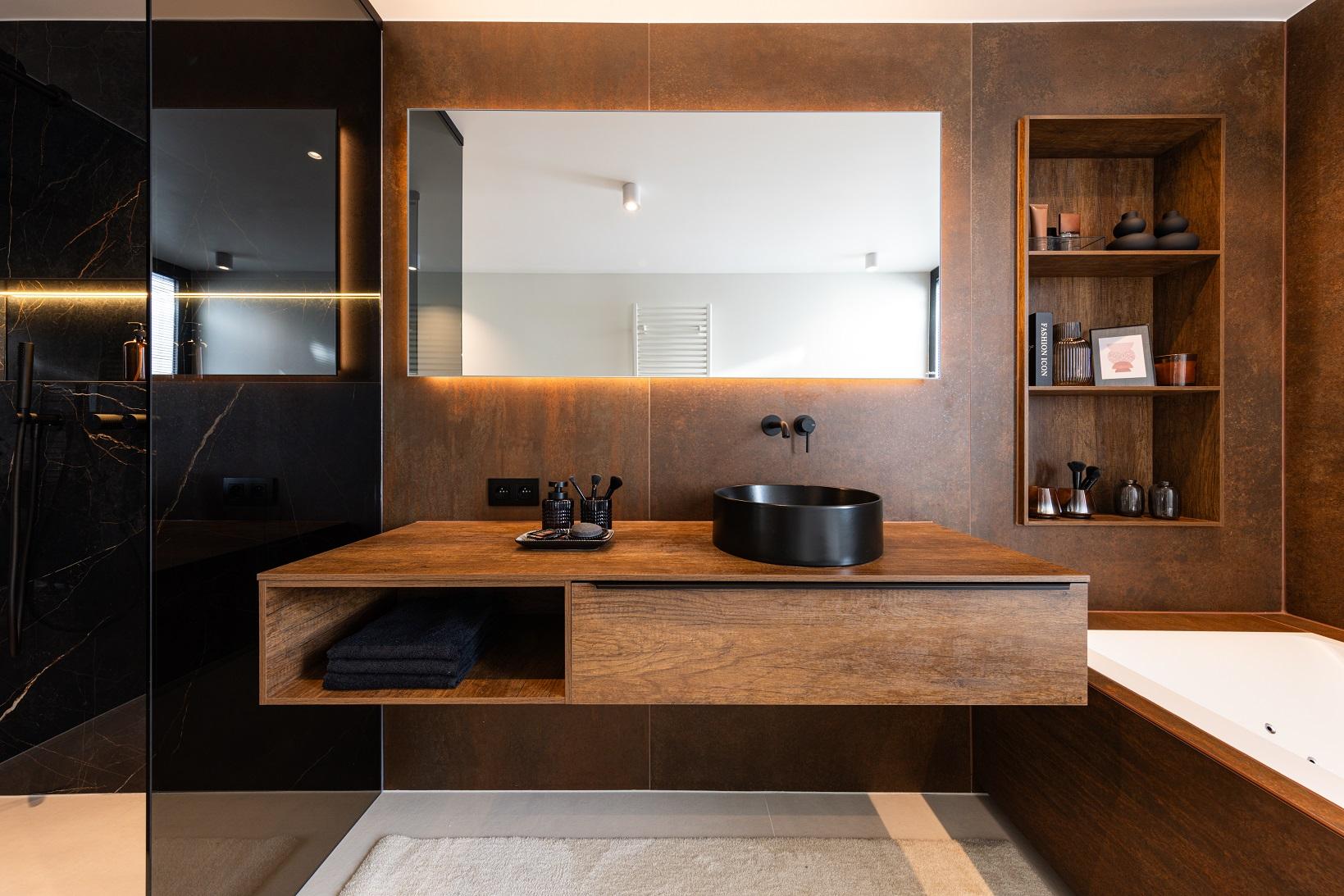 Salle de bains aux tonalités chaleureuses