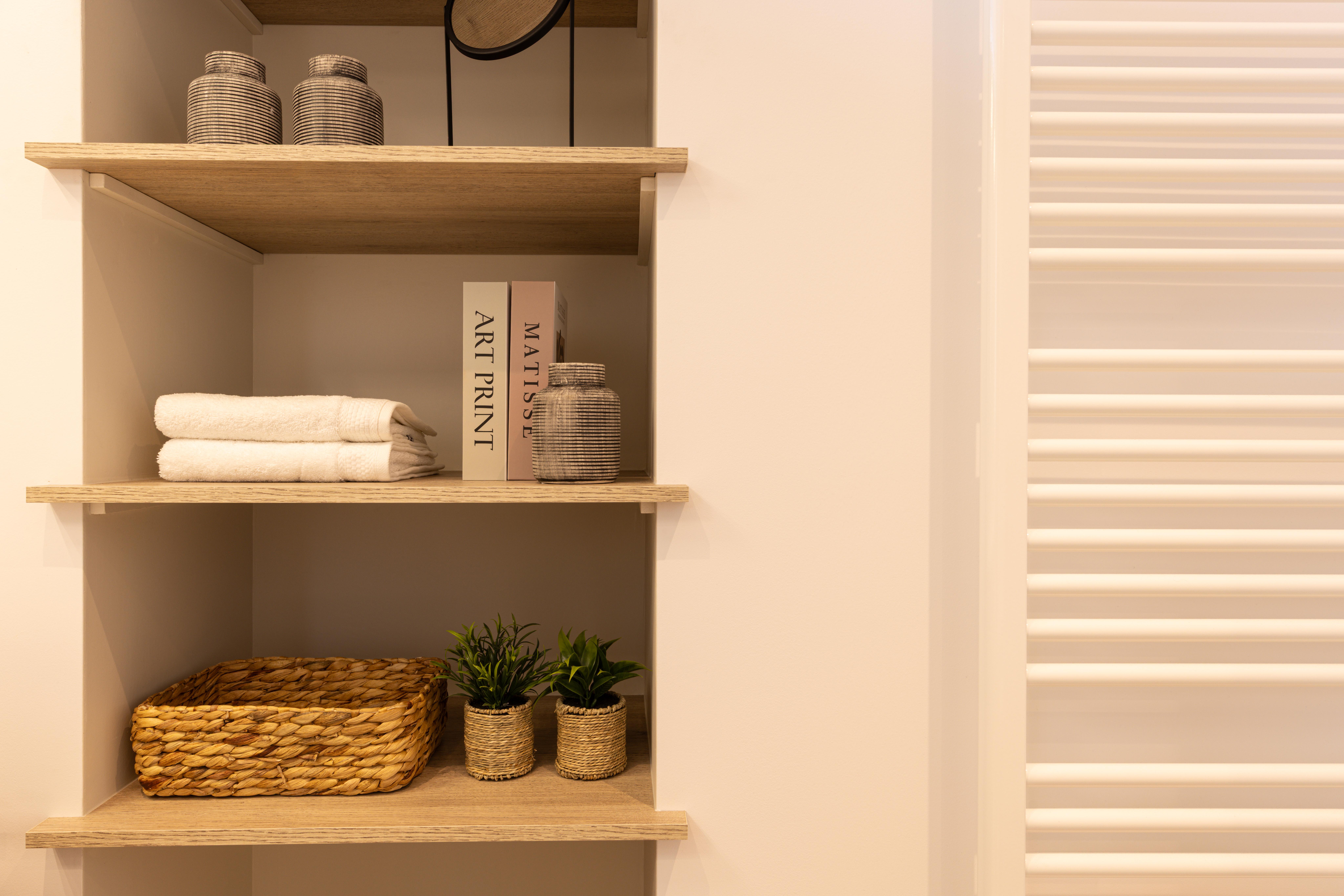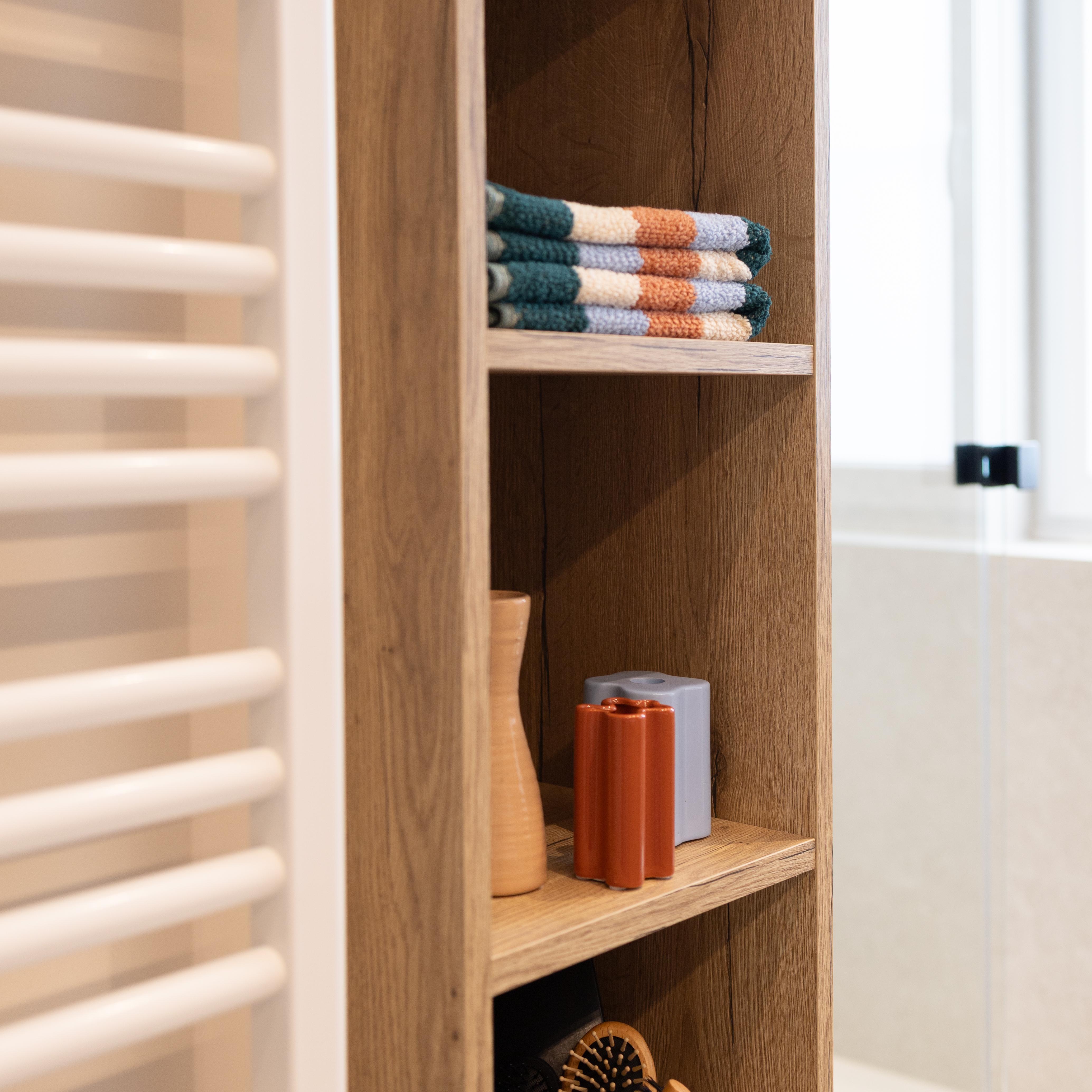 Salle de douche aux multiples rangements