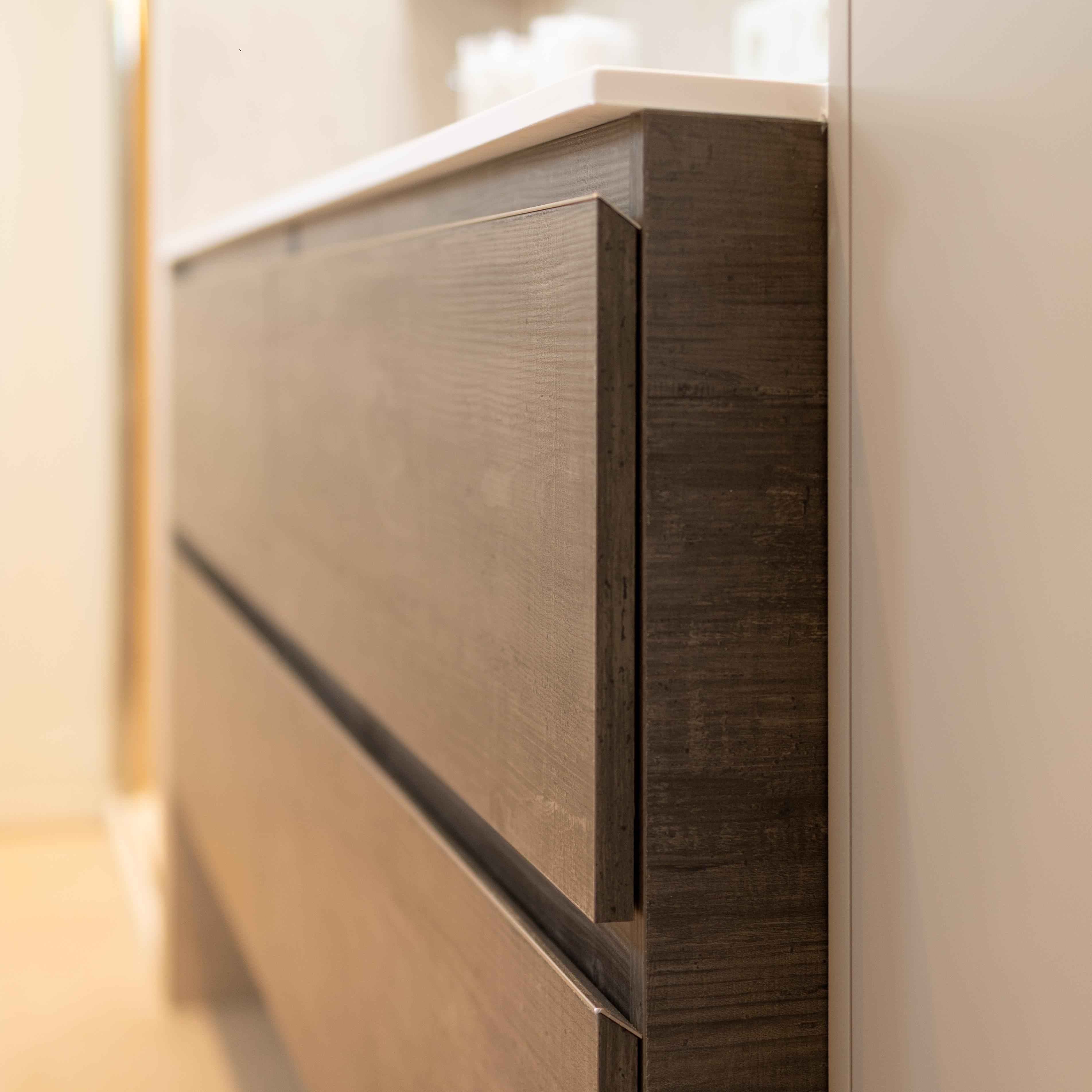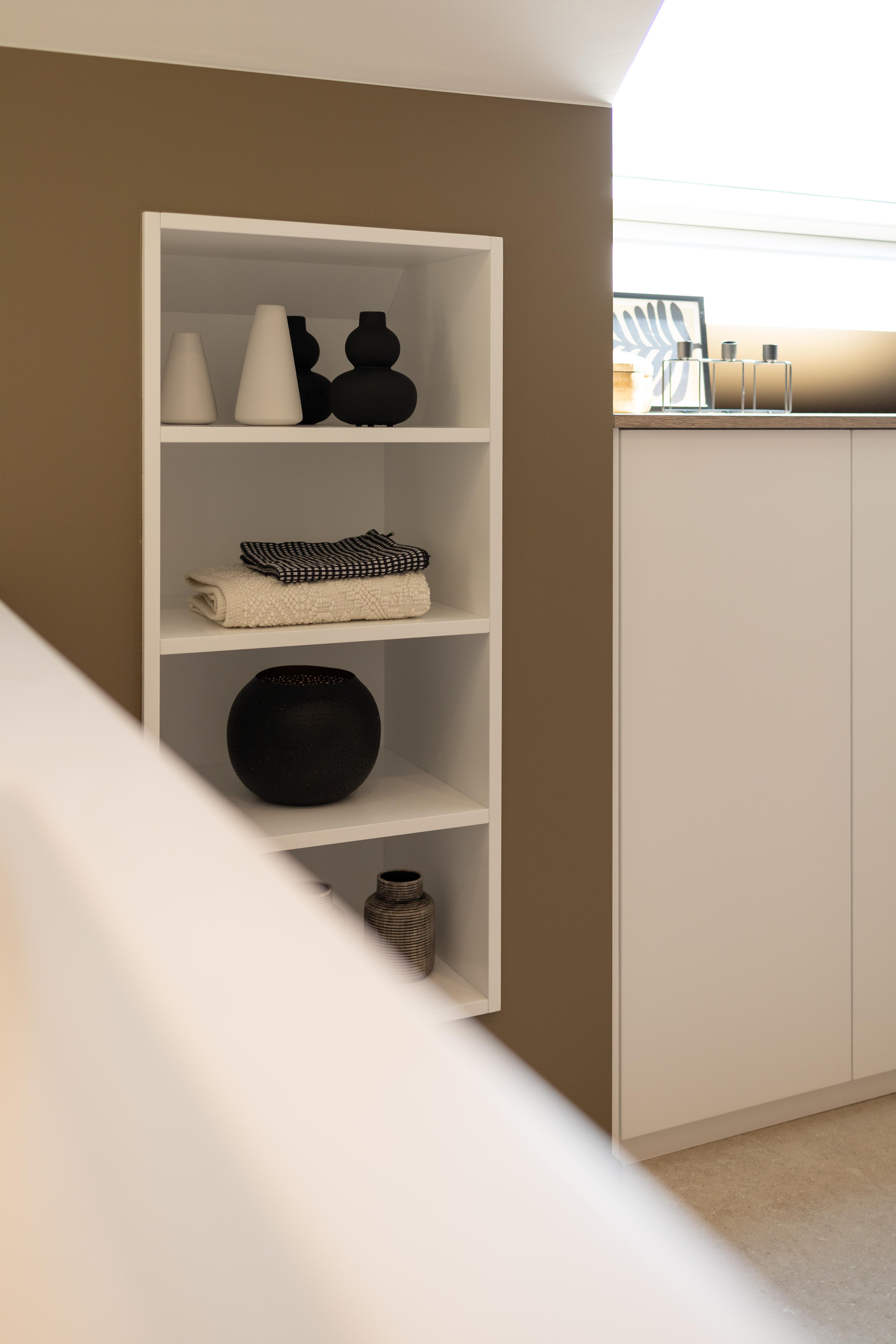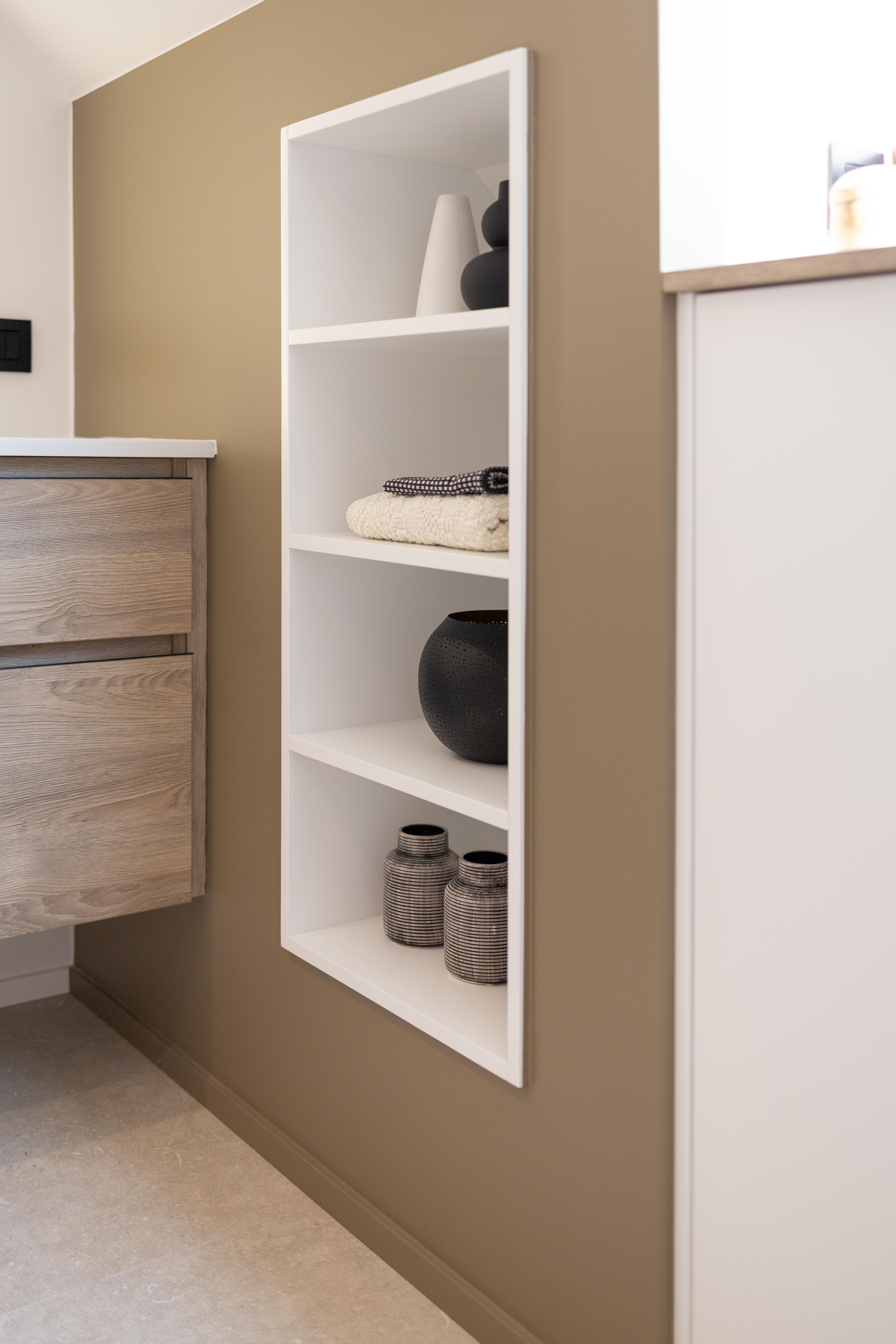 Quand le sur-mesure permet de tout intégrer harmonieusement. La salle de douche a été pensée pour accueillir un coin buanderie parfaitement intégré, discret et esthétique. Chaque détail a été conçu pour optimiser l’espace tout en conservant une ambiance douce et moderne. Un aménagement aussi beau que pratique !
