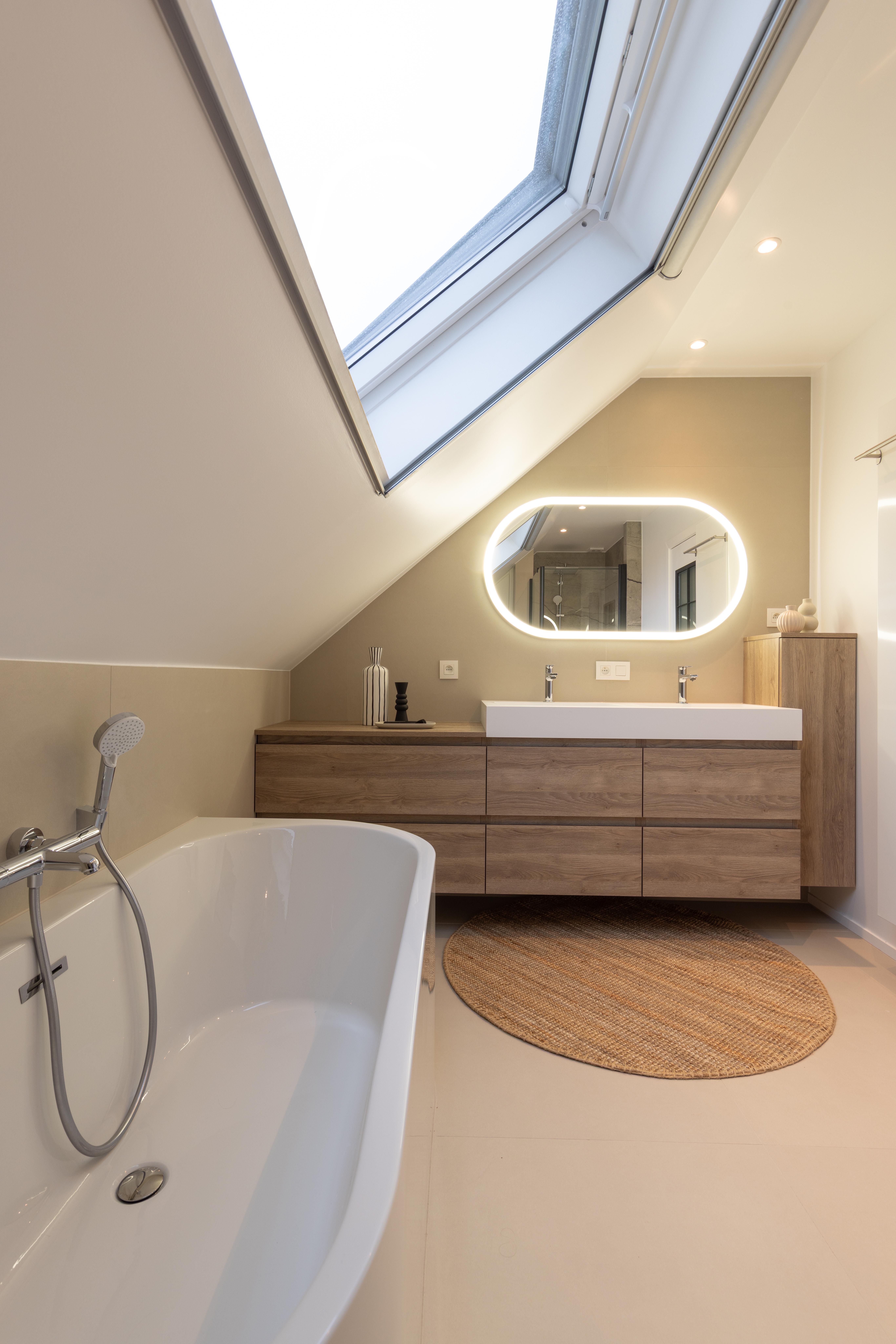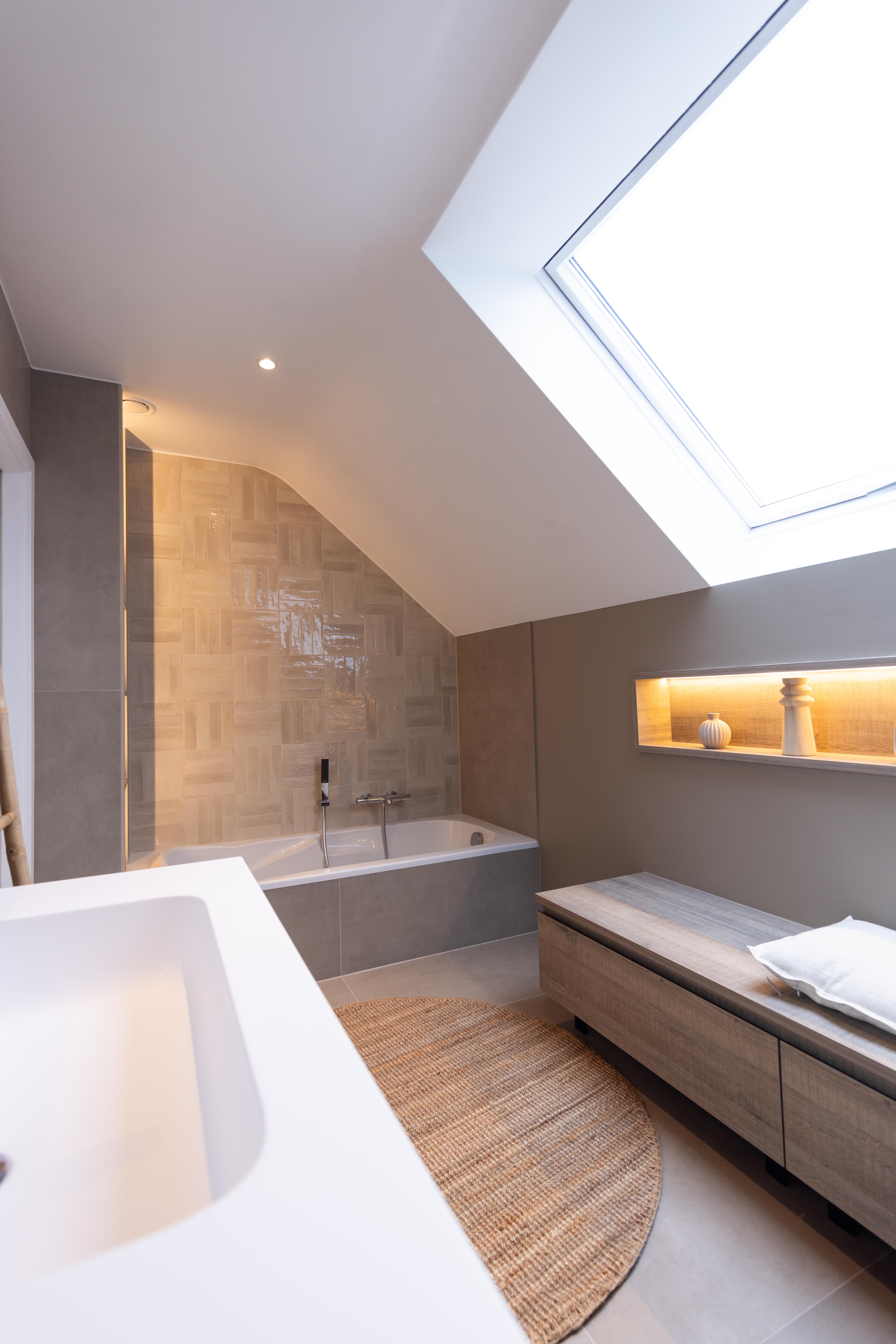 Baignoire en semi ilot sous velux