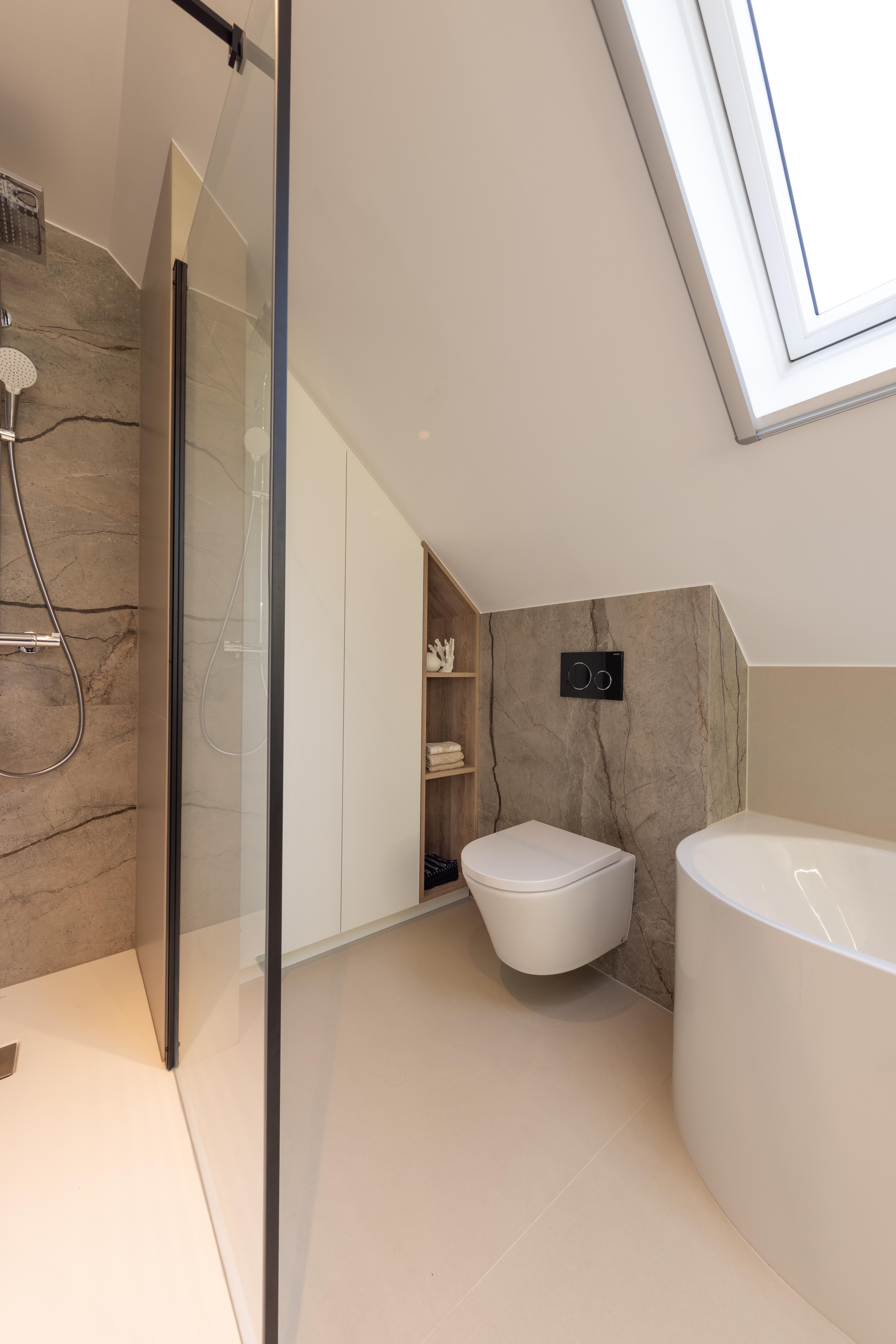 Salle de bains "multifonctionnelle sous pente de toit"