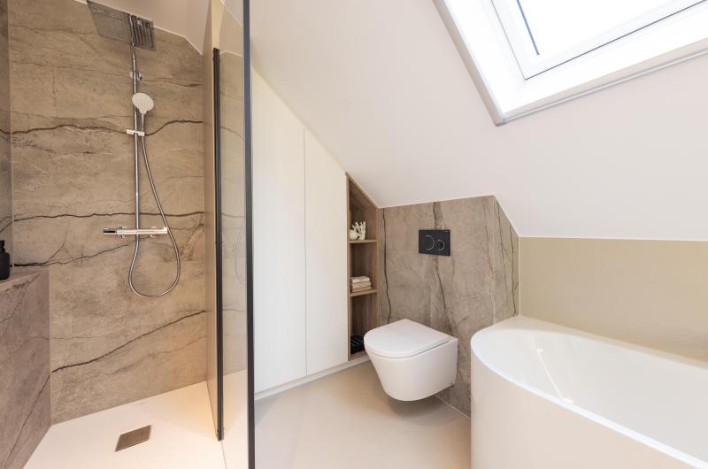 Installer une salle de douche dans une pièce sous combles peut lui apporter beaucoup de cachet et de personnalité mais il faut savoir contourner les contraintes liées à ce type d’espace. Démonstration en image avec ce projet qui confirme qu'il doit être agréable de prendre soin de soi dans ce lieu.